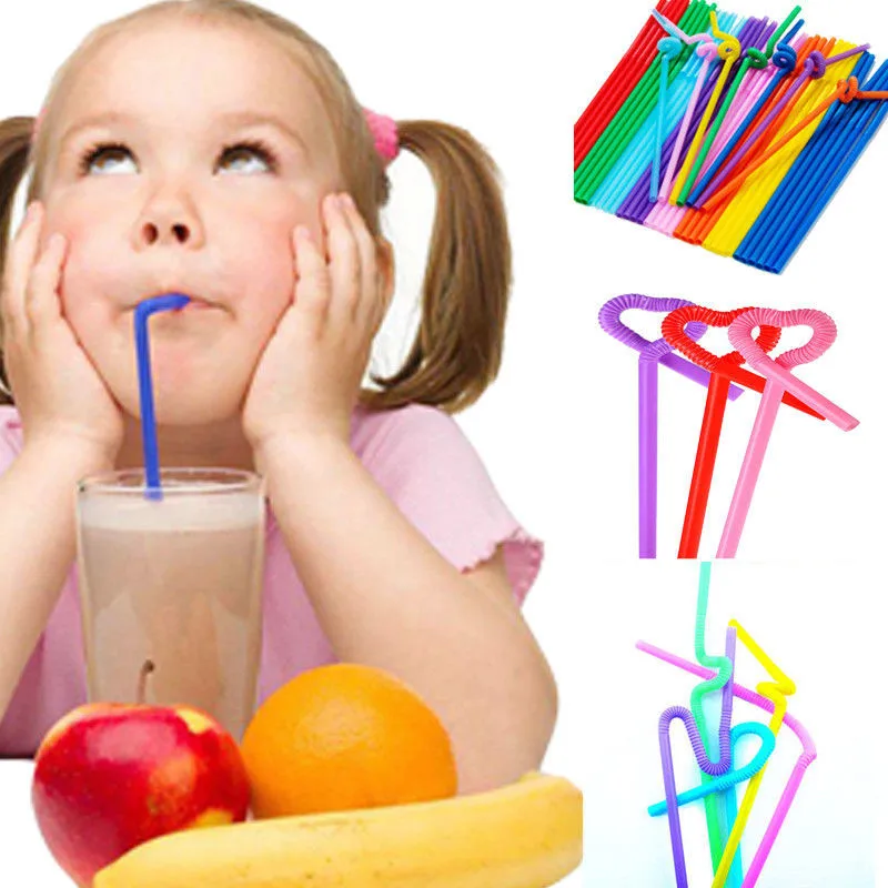 100 шт.лот вечерние питьевые соломки гибкая PP сока соломы на день рождения свадебное украшение
