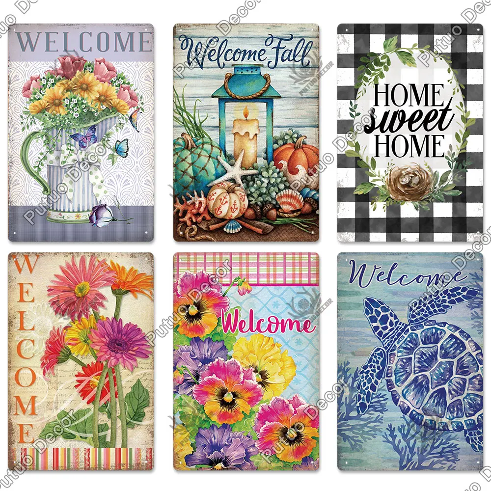 Декоративный цветок Putuo, винтажный металлический знак, Жестяная Т...