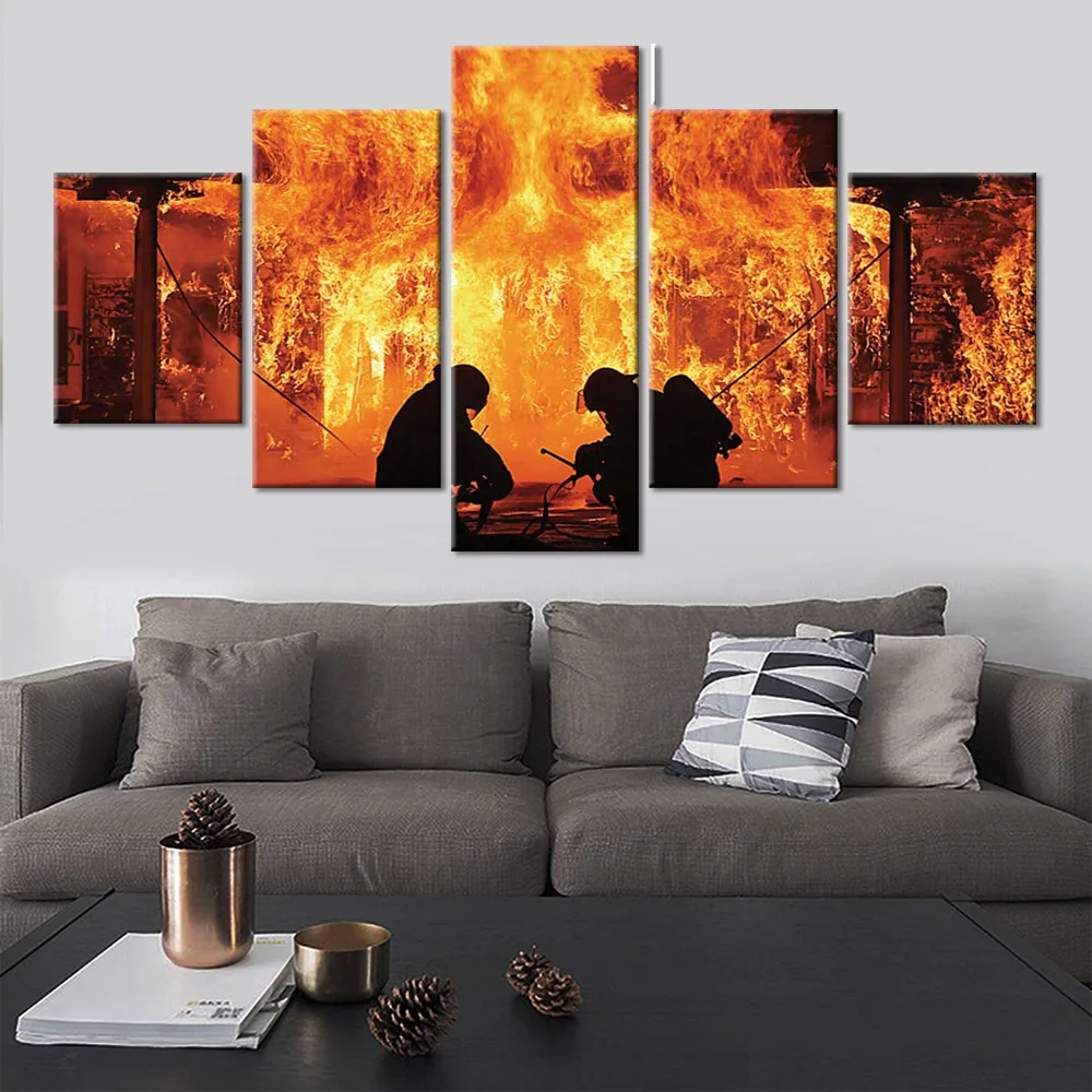 Модульный плакат с изображением пожарного, 5 шт., Настенный декор, HD принты, картины пожарного для подарка, украшение для дома