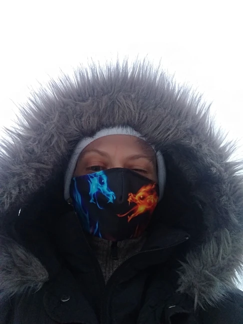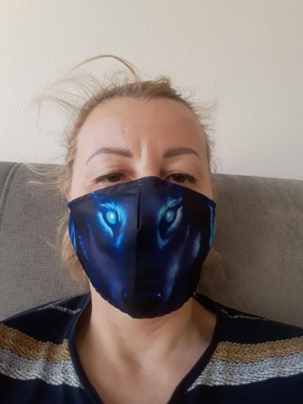 Рисунок высочайшего качества. Никаких разводов или размытий или обрезов. Приблизительные размеры в самых широких частях: ширина 21 см, высота 13 см. Фиксаторы на резиночках можно так оттяшивать и фиксировать, что уши не болят. Маска из плотного материала, но дышать в ней легко. На морозе помогает не лышать холодным воздухом. Есть кармашек для фильтров. В Киев прибыло очень быстро - за 16 дней! Положили в почтовый ящик.