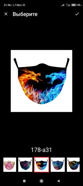 Маска красивая. Матерьял прочный но дышать легко. Запахов лишних нет. Яркая. Как на фото. По мне чуть больше рисунок чем хотелось. Продавец отправил сразу. Пришла быстро маска.