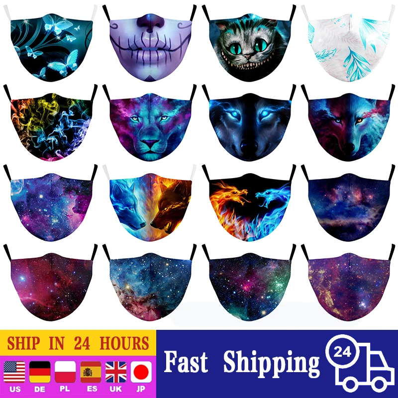 Маска унисекс с рисунком, многоразовая, с фильтром Pm2.5, моющаяся, ветрозащитная, хлопковая маска