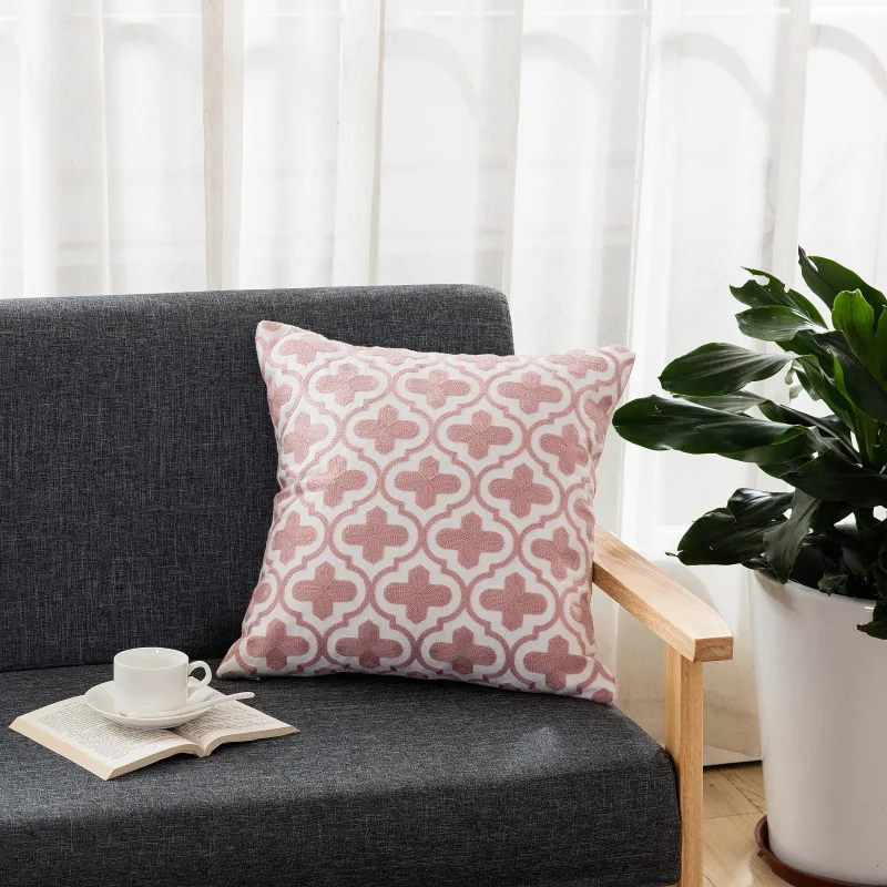 Романтическая розовая декоративная подушка 45x45 см с вышивкой в скандинавском стиле, роскошная хлопковая подушка для дивана