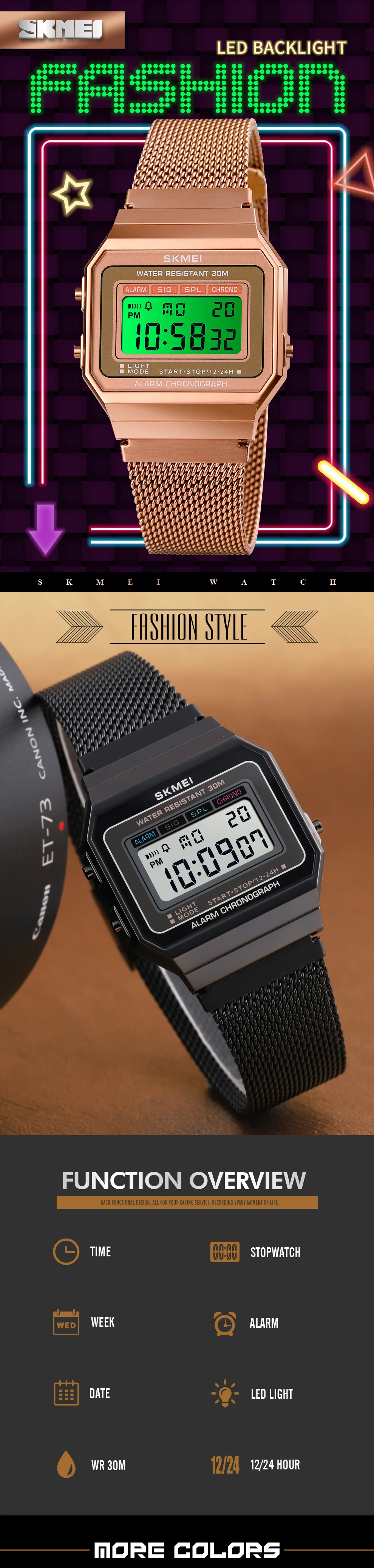 SKMEI модные красочные светодиодные спортивные цифровые часы женски...