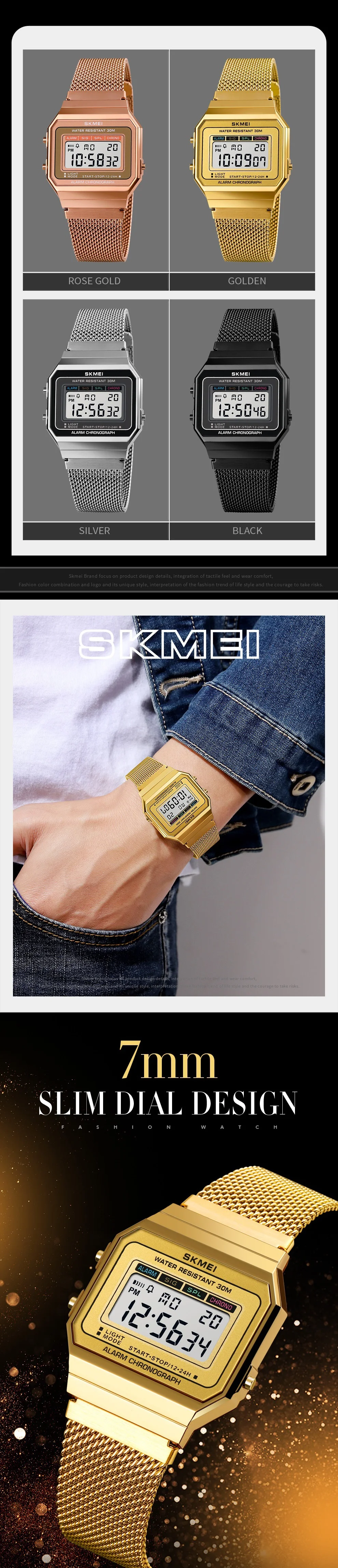 Часы мужские SKMEI, цифровые, золотые, со светодиодным дисплеем, се...