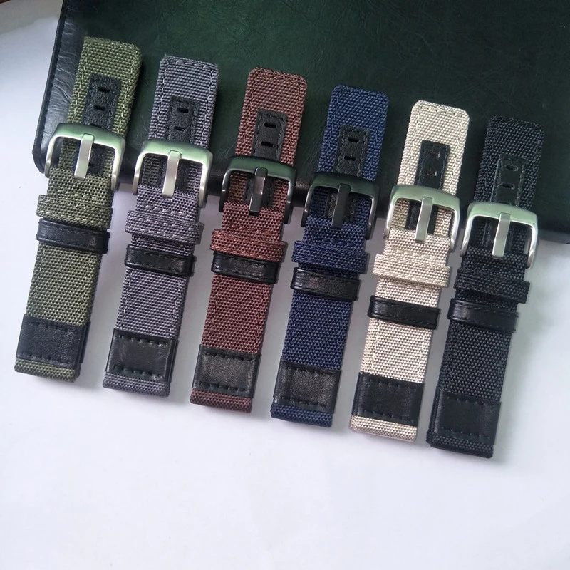 Ремешок для часов, нейлоновый, Холщовый, мужской, кофейно-синий, зеленый, 22 мм, 20 мм
