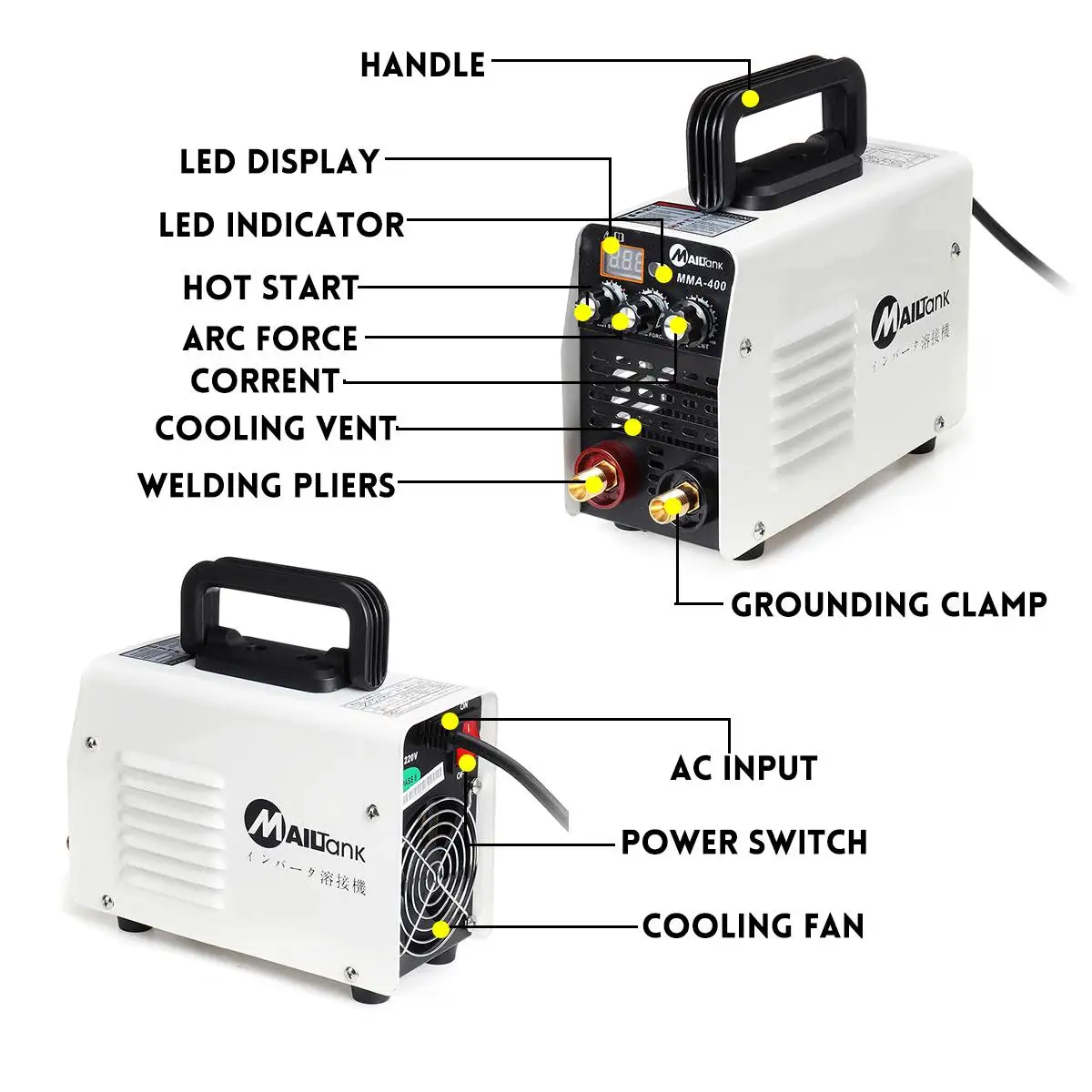 Наименование: MMA-400 сварочный аппарат с горячим запуском/дуговой силой 220 ВМодель:MMA-400Стиль: дуговая сваркаМатериал: металл + АБС-пластикЦвет: белыйВходное напряжение:220 ВНоминальная частота: 50/60 ГцВыходной ток:20-400AНапряжение холостого хода: 60 вКПД: 80%Рабочий цикл: 60%Коэффициент мощности: 0,73Класс защиты: IP21SТолщина нанесенного стержня: ≤ 4,0 ммФункция:Горячий старт, сила дуги, CorrentПрименяемый электрод: нержавеющая сталь, чугун и другой электрод с базовым покрытиемПрименяемый Материал: нержавеющая сталь, углеродистая сталь, железо, медь и другие цветные металлыОсобенности-Цифровой дисплей позволяет регулировать выходной ток в диапазоне от 20 до 400 А-Регулируемый Контроль силы дуги, предотвращает прилипание электрода во время сварки-Горячий старт, увеличивает выходную силу в начале дуги, чтобы исключить прилипание электрода-Передовая технология инвертора IGBT, отличается отличной стабильностью дуги и меньшим количеством брызг-Высокая эффективность сварки, 60% Рабочий цикл, обеспечивает длительную сваркуПриложенияПодходит для воздушных работ, полевых работ, внутренней отделки, обслуживания и так далее.Примечание: Подключите сварочный аппарат к правильному напряжению!Посылка входит1 Электрический сварочный аппарат1 держатель электрода с кабелем1 Заземляющий зажим с кабелем1 х Кисть1 х аксессуары1 х Руководство1 коробка(Распределите адаптер в соответствии с вашей страной)