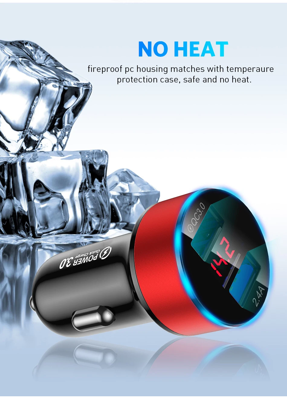 Автомобильное зарядное устройство USB, 5 В, 3 А, быстрая зарядка, светодиодный дисплей, зарядное устройство для телефона, автомобильное зарядное устройство для Xiaomi, Samsung, iPhone, Huawei, адаптер