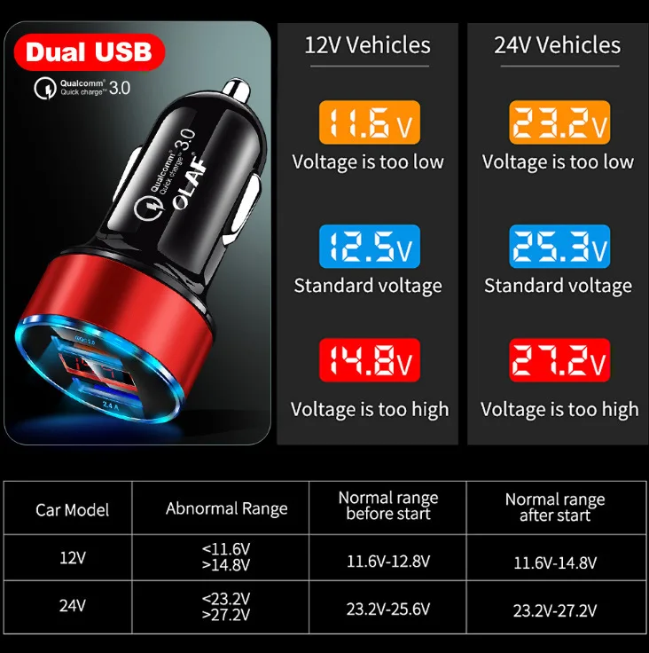 USB 5V 3A автомобильное зарядное устройство Быстрая зарядка светодиодный дисплей зарядное устройство для телефона автомобильное зарядное устройство для Xiaomi Samsung iPhone Huawei мобильный телефон адаптер