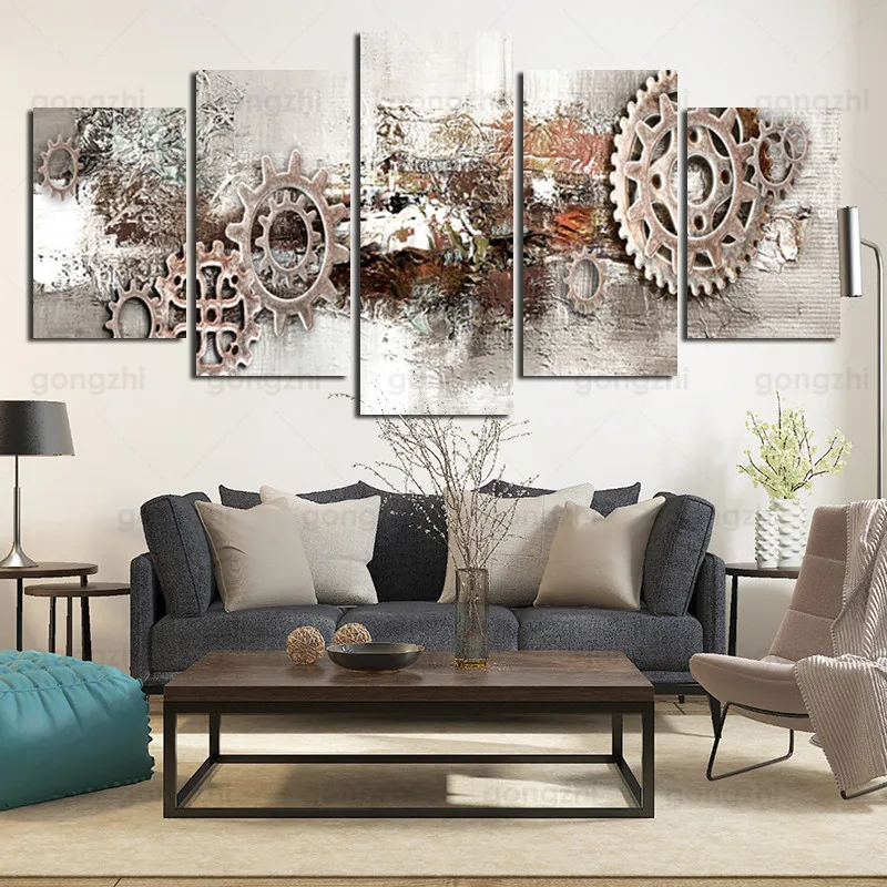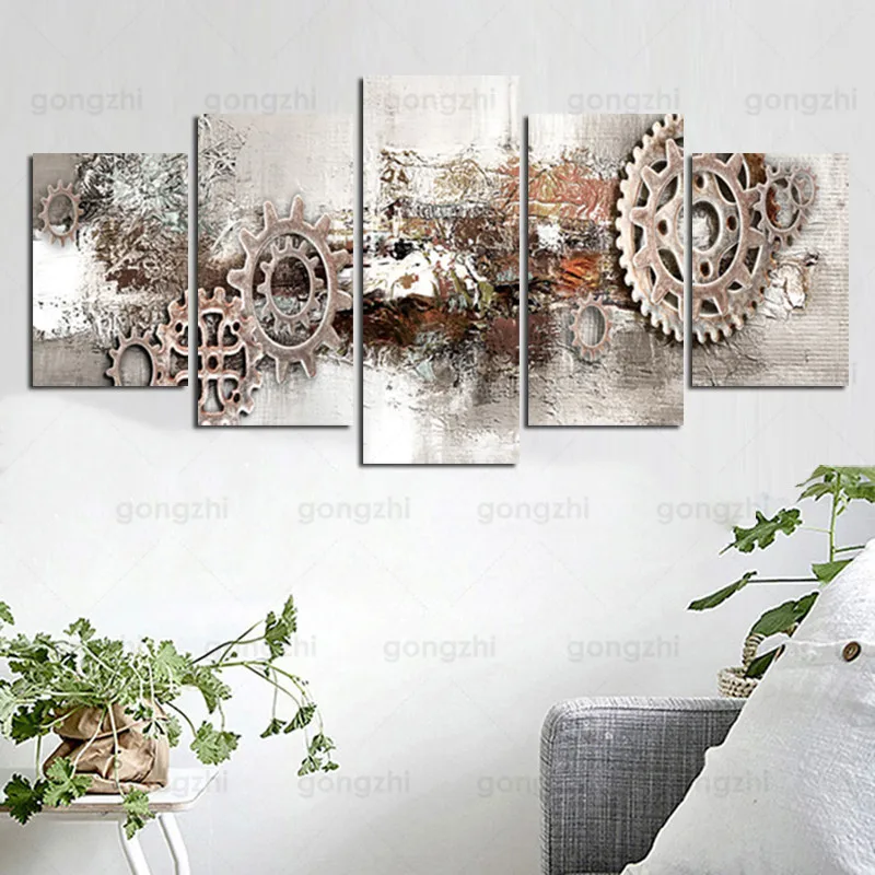 Абстрактный дизайн, сенсорная металлическая шестерня, промышленная труба, современная домашняя роспись, украшение гостиной, безрамный холст, печатный плакат, 5 шт.