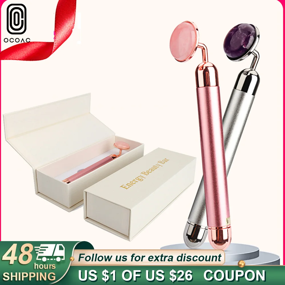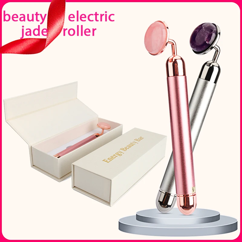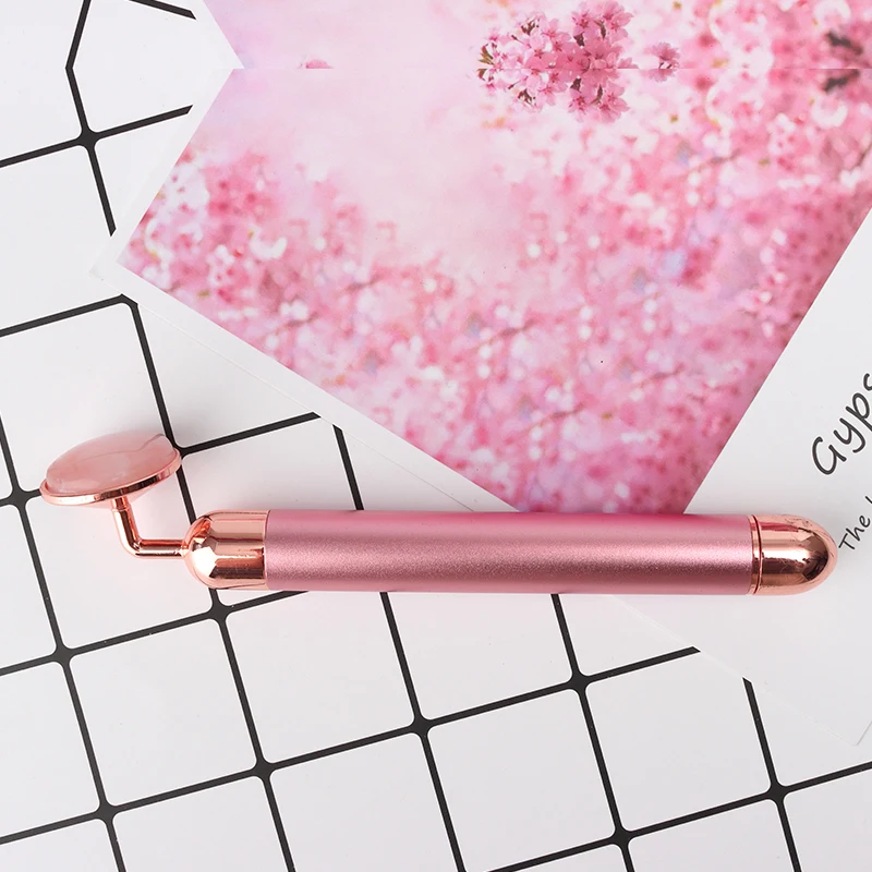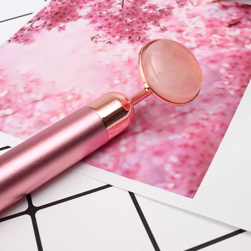 Электрический нефритовый ролик для лифтинга кожи лица вибрирующий розовый массажер для лица круги натуральный розовый КВАРЦЕВЫЙ косметический массажный инструмент