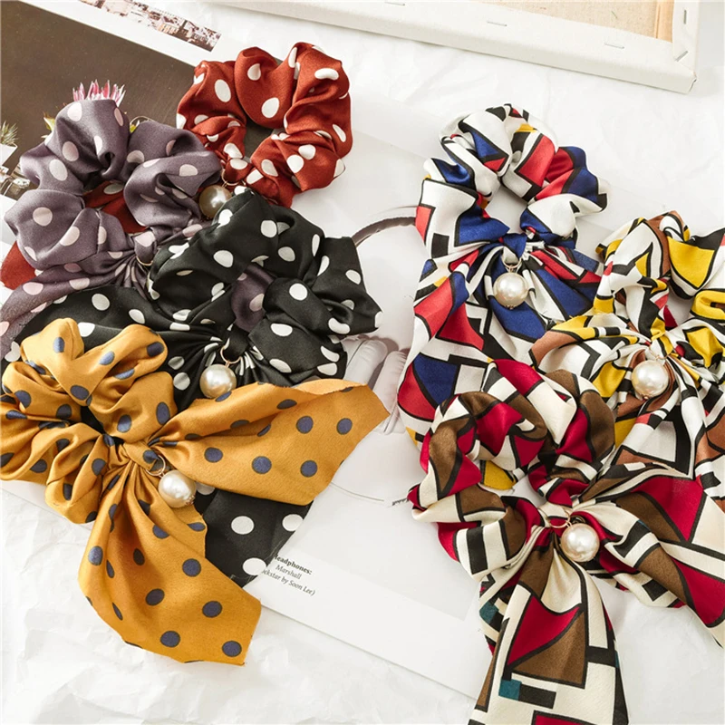 Fashoin Женская резинка для волос с жемчужным принтом женская резинка для волос с бантом заколка для волос для девочек заколка для хвоста аксессуары для волос