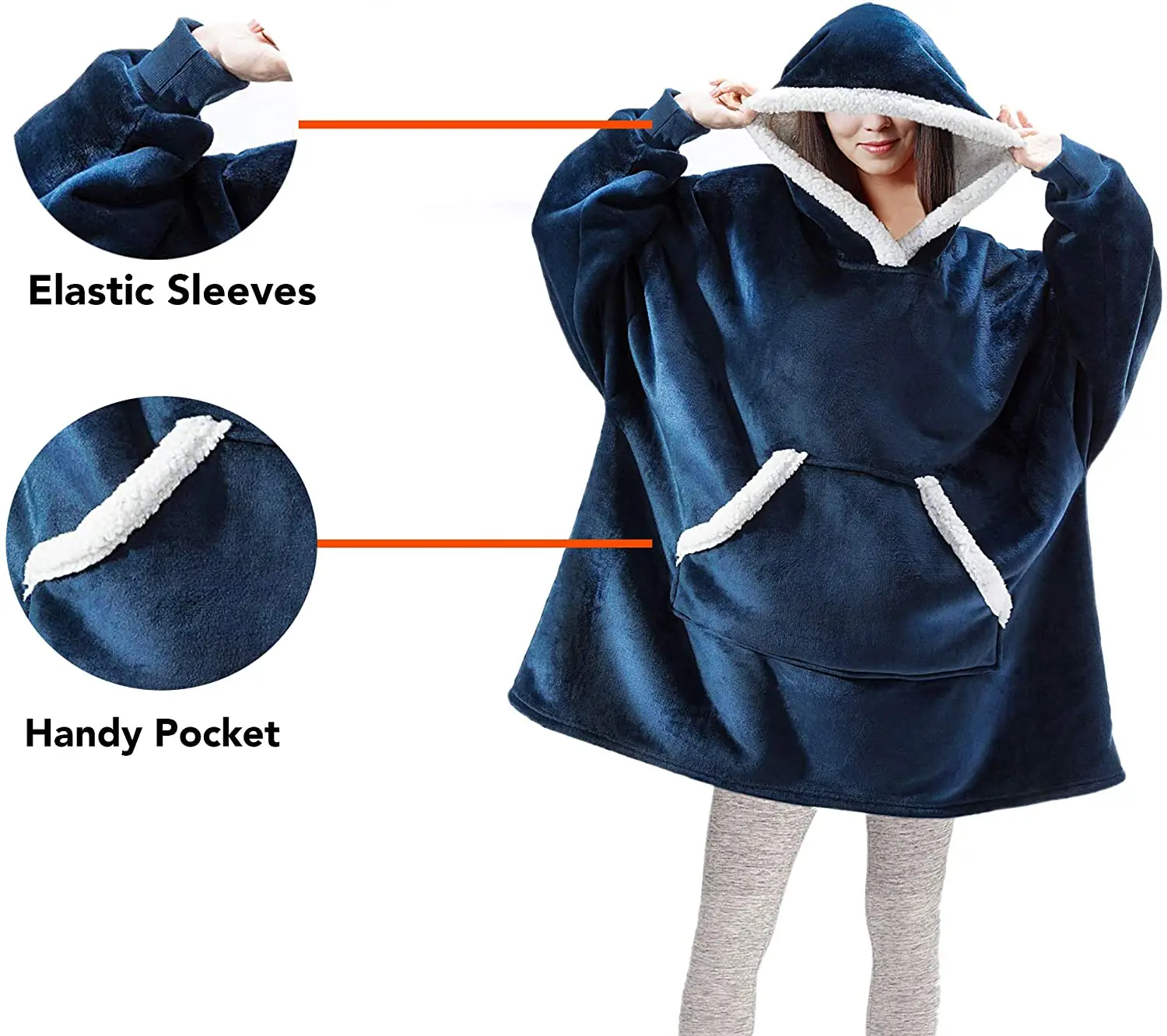 Зимнее одеяло HMSU оверсайз с рукавом Толстовка Оверсайз Флисовая т...