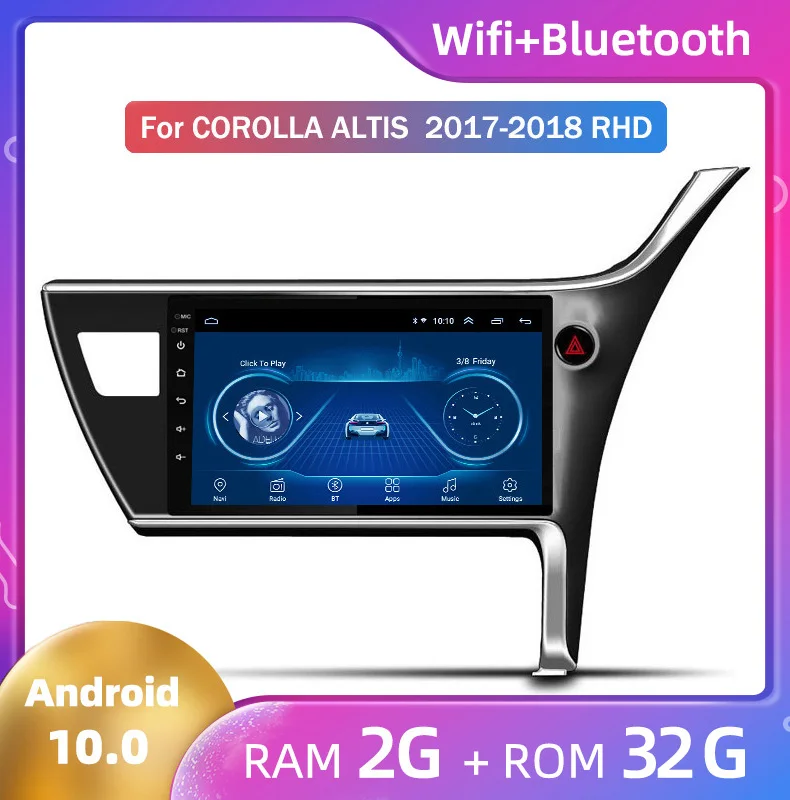 Android 10, четырехъядерный процессор, встроенная память 32 ГБ, телефон для Toyota Corolla Altis 2017 2018 RHD, большой экран, навигация