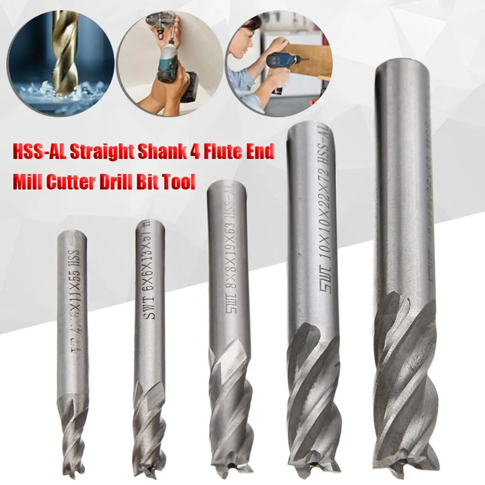 Фрезер с 4 зубьями и прямым хвостовиком, супер жесткий металлический концевой фреза, резак, сверло, инструмент для резных и высокоскоростных машин