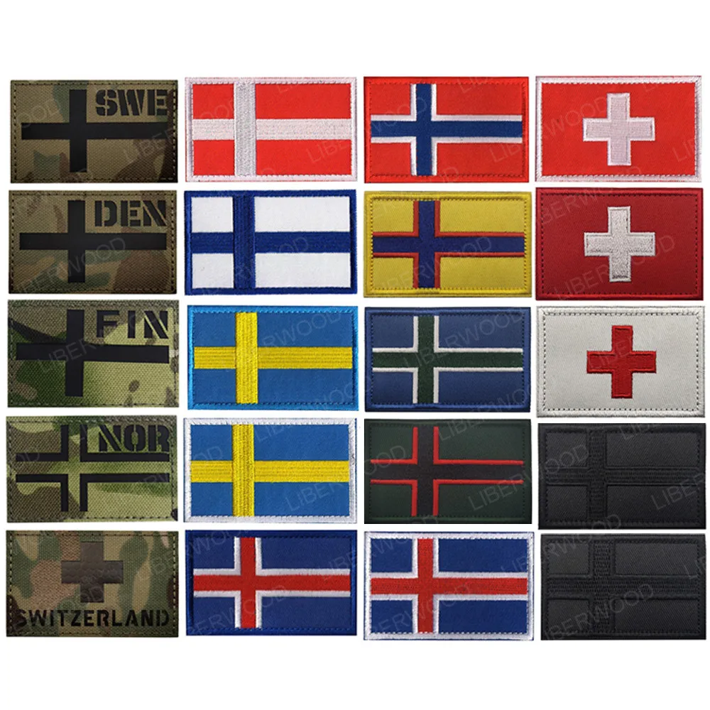 Нашивка с флагом Финляндии, финской, Исландии, Швеции, Дании, норвежской, Швейцария, армейский Тактический отражающий значок в стиле милитари