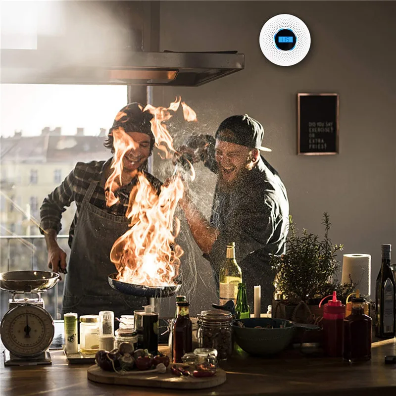 2 в 1 светодиодный цифровой газ дымовой пожарной сигнализации детектор угарного газа голос предупредить Сенсор защиты безопасности дома Высокочувствительный
