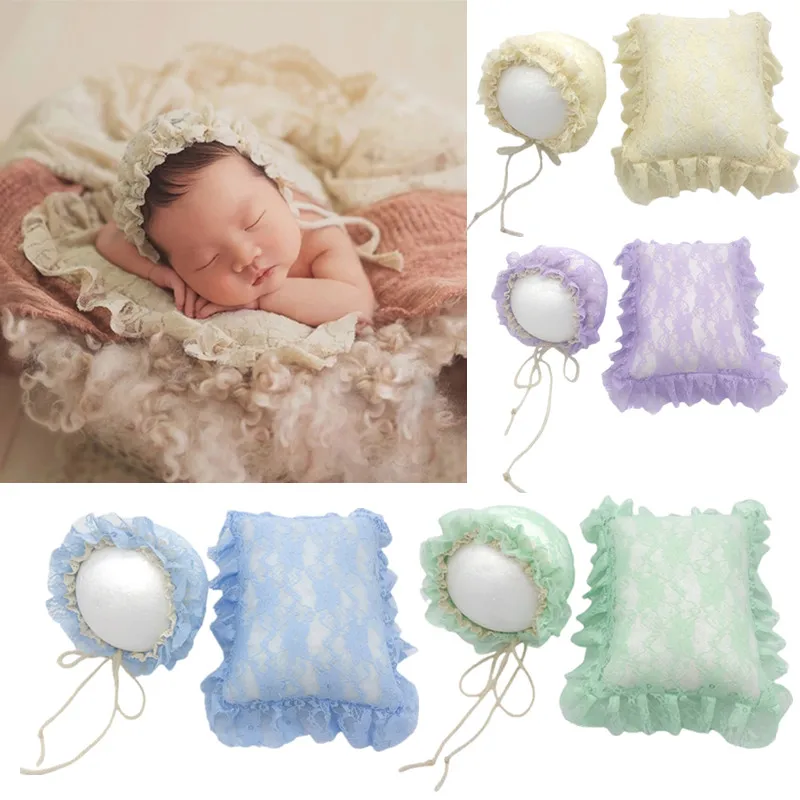 Комплекты одежды из 2 предметов для младенцев кружевная шапка-подушка набор новорожденных Подставки для фотографий милый детский чепчик принцессы фото съемки, помощи аксессуаров