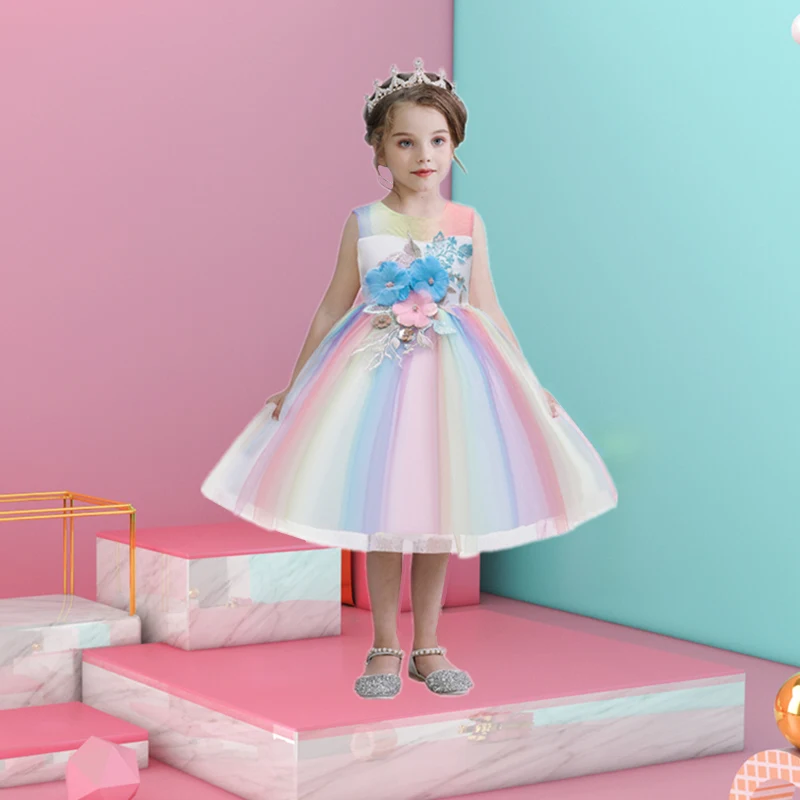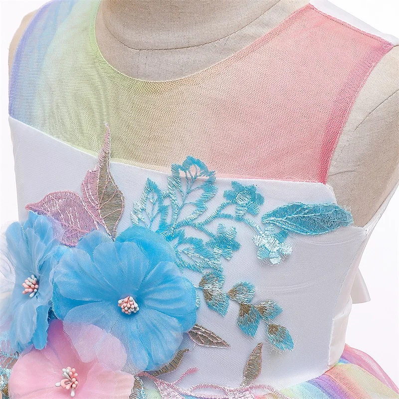 Праздничное платье для девочек элегантное платье принцессы для девочек; Свадебное платье с цветочной аппликацией; Платье на выпускной, От 4 до 10 лет дети церемонии платья для девочек Vestidos