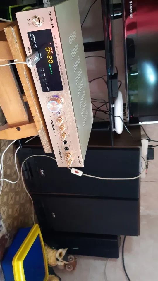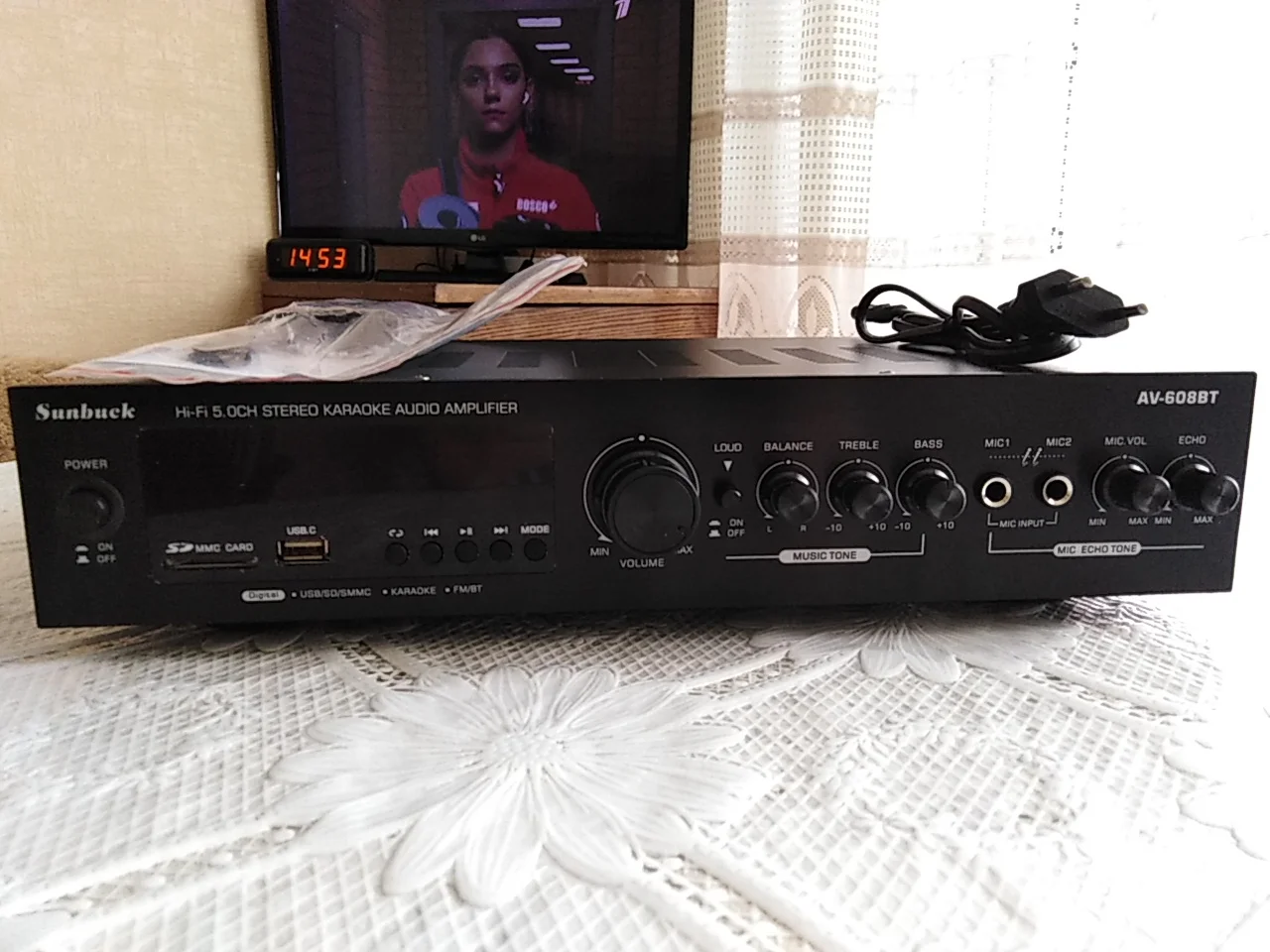 доставили быстро, склад находится в Москве, курьером до двери. Описание соответствует, мощности на колонки от техникса на 120 Вт., хватает с лихвой, есть небольшая регулировка по басам и высоким частотам. Переключение режимов, на передней панели, FM радио, чувствительность на прием, не очень, нужна хорошая антена. блютуз работает хорошо. AUX 2 входа на задней панели, но они не переключаются. если подать сигнал на 2 входа сразу от разных источников, то усиливаются сразу оба и накладываются друг на друга. крутилки приятные на ощупь. за эти деньги вещь нормальная.