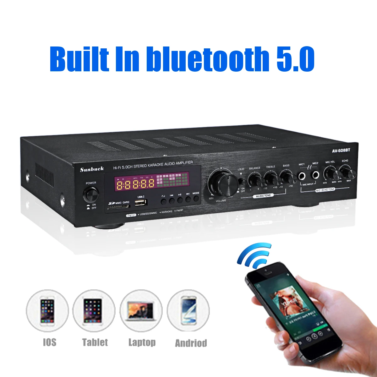 Усилитель мощности звука 2000 Вт, 220 В, 110 В, Bluetooth 5,0, для домашнего кинотеатра, поддержка FM, USB