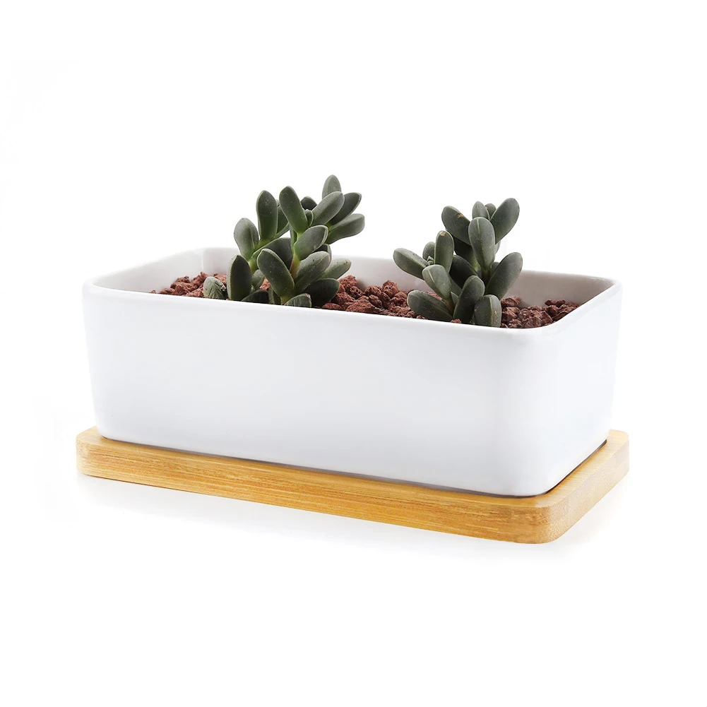 Прямоугольная бамбуковая поднос для растений, подставка для цветочного горшка, горшок для суккулентов поднос, простой элегантный дизайн, домашний декор