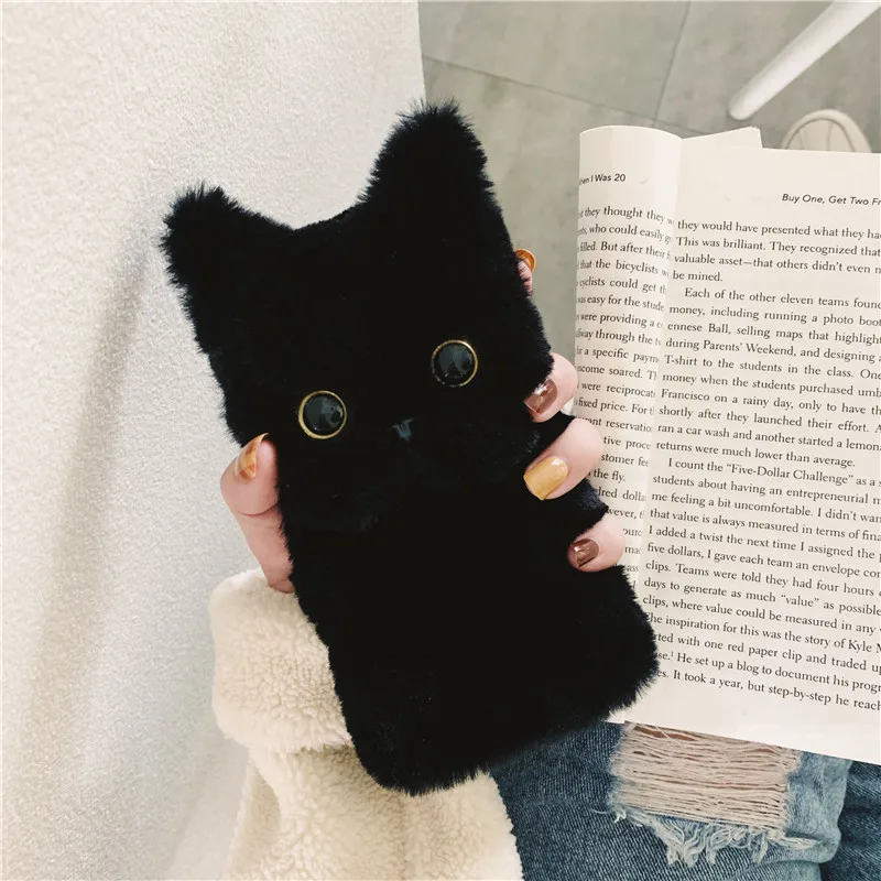 Пушистый силиконовый чехол для телефона, милый плюшевый чехол с кош...