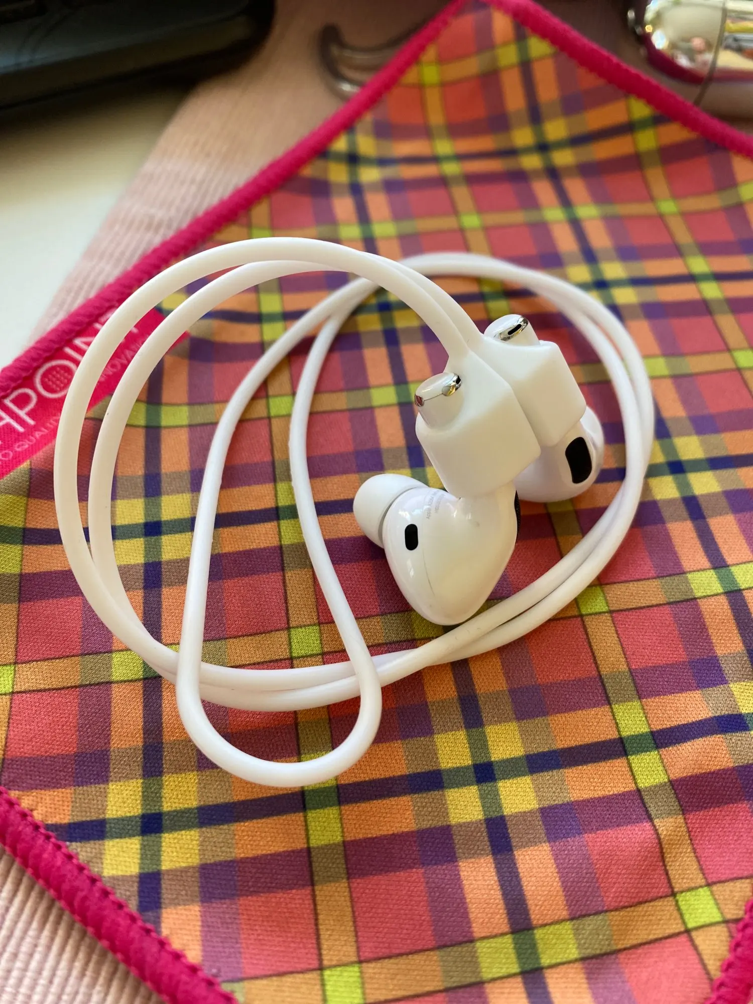 Шнурки хорошие, силиконовые, мягкие. Магнит неодимовый, оч сильный. Наушник вставляется довольно туго, надеюсь, что не будет выскакивать. В ушах крепление не мешает. Проблема в том, что у меня pro, а эти держатели закрывают кнопки управления. Так что этот вариант, когда нужно просто не посеять уши, пока не убрал в кейс. Типа на спорте.