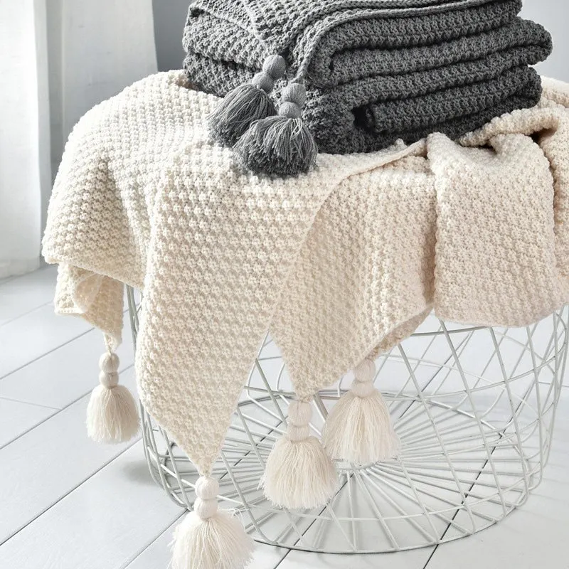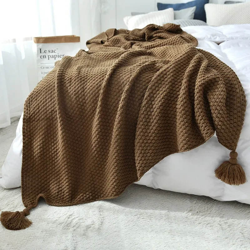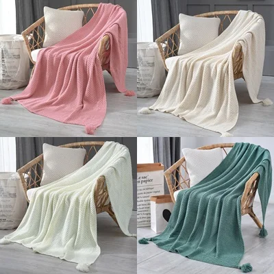 Покрывало с кисточками, однотонное бежевое серое кофейное покрывало для кровати, дивана, домашний текстиль, модная накидка, вязаное одеяло 130x170cm