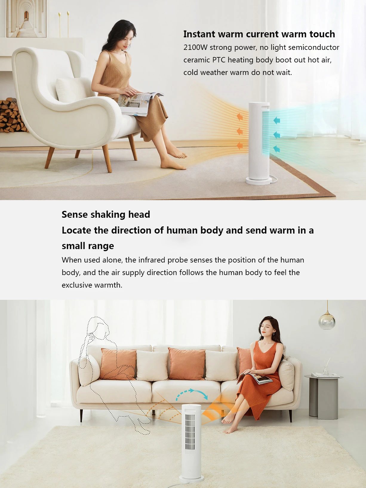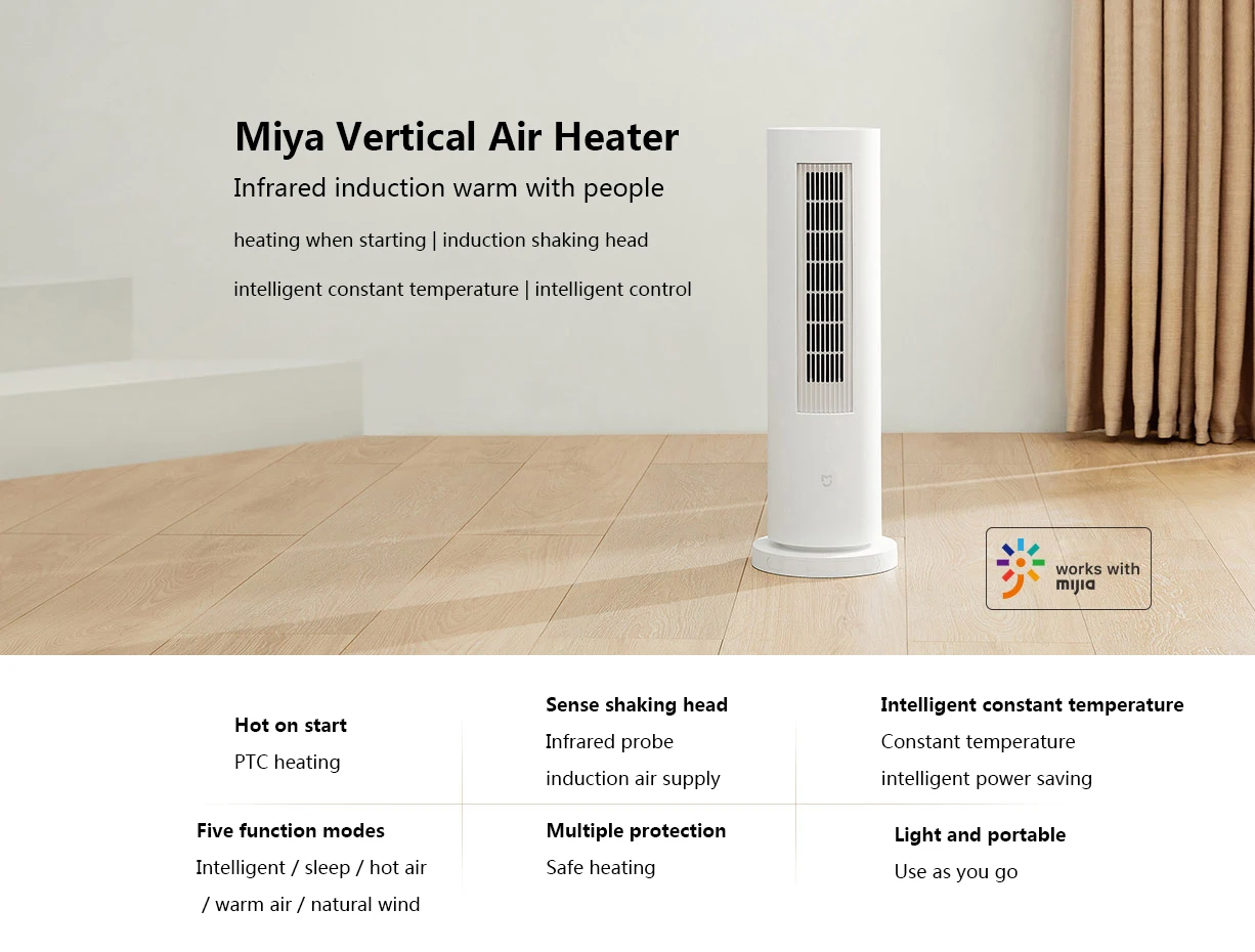 Вертикальный нагреватель Xiaomi Mijia 2100 Вт PTC, индукционный наг...