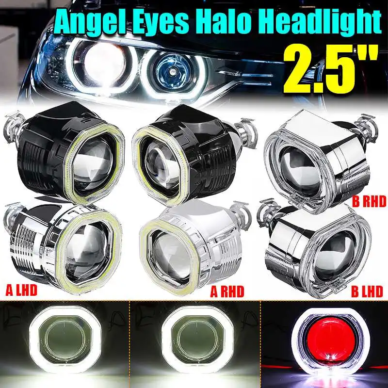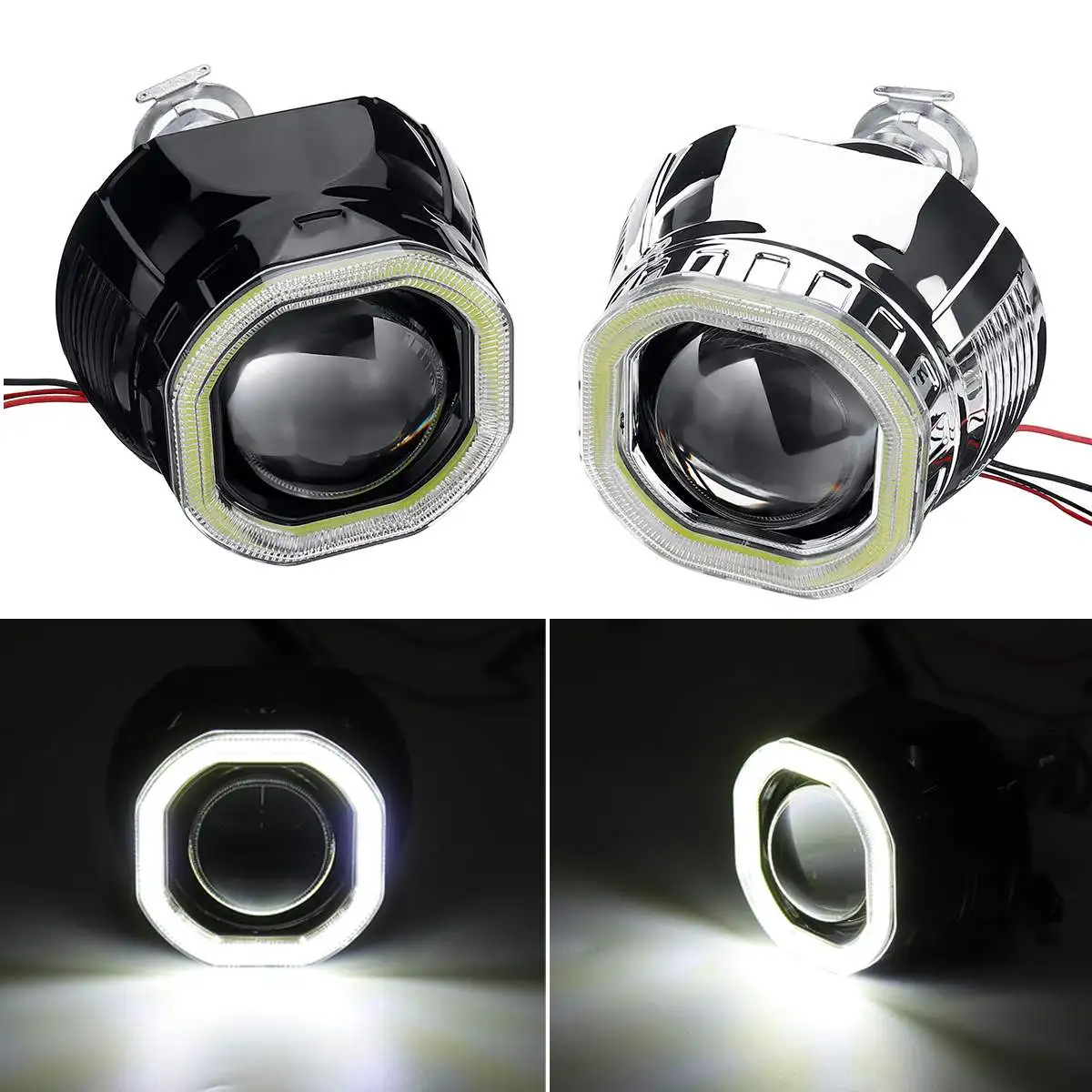 Автомобильный монолитный блок светодиодов, 12 шт., 2,5 дюйма, биксеноновый прожектор с ангельскими глазами, гало, просветильник ектор, линза, дневсветильник свет, HID H1 H4 H7 LHD RHD