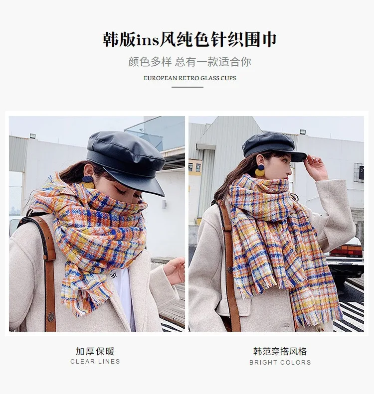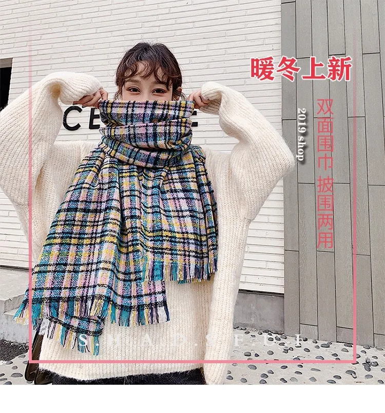 VISROVER Новый 3 вида цветов женские зимний шарф модные женские туфли шали кашемира на ощупь зимние палантины в клетку зимняя хиджаб шарф подарок
