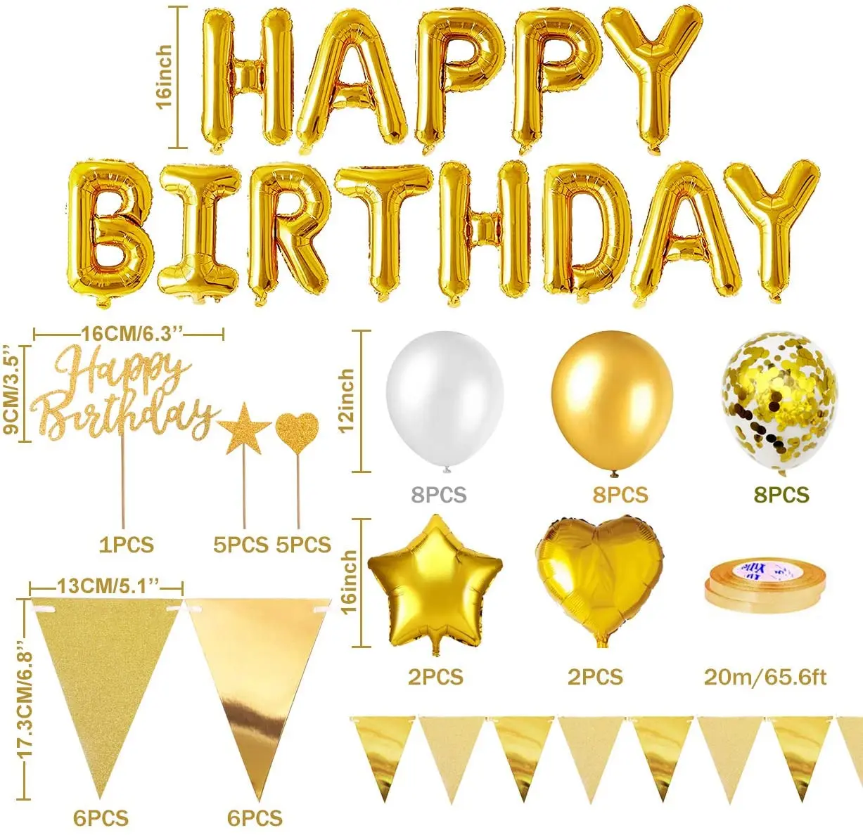 Золотые украшения для дня рождения, баннер на день рождения, воздушный шар, золотой треугольник, логотип, флажки, сердце, Звездный конфетти, воздушный шар, торт, верхняя шляпа