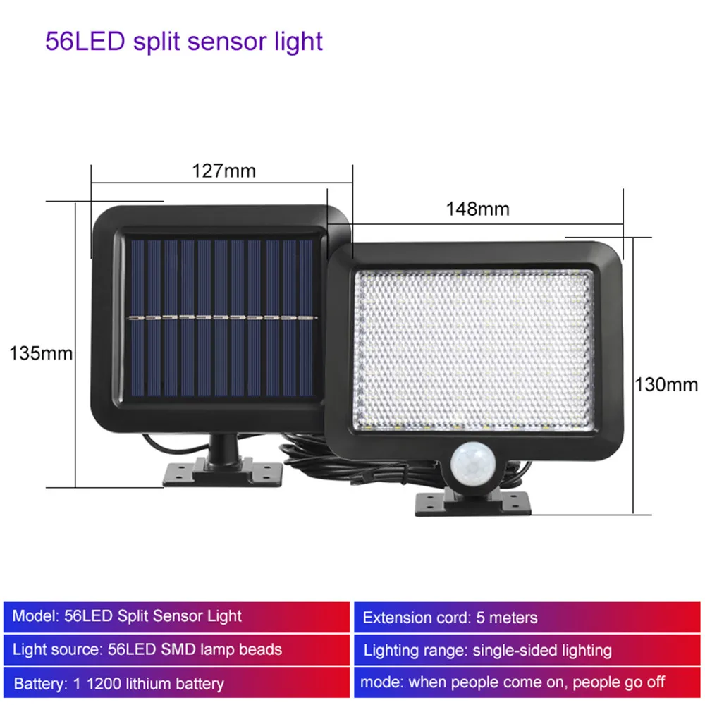 Особенности:Легко установить, просто прикрутите изделие на стене.На солнечной энергии, уличная лампа с солнечной батареей, используя энергию солнца для вашего ночного освещения.Включить светильник выключателя в течение дня не включено, только в ночное время Включите переключатель, когда датчик обнаруживает, что тело человека может получить светильник высокой яркости.IP65 водонепроницаемая, термостойкая Солнечная лампа, подходит для большинства типов погоды.Солнечные наружные фонари освещают Ваш сад, двор, проходы, крыльцо, двор или подъездную дорожку и т. д.Продукт оснащен 5 метровой солнечной панелью, COB56/98/100/108/120Лампа, сильная яркость, водонепроницаемая на открытом воздухе.Характеристики:Материал: пластикЛампа: 56/98/100/108/120 лампа COBЦвет: черныйПереключатель: без переключателя (штекер яркий)Панель солнечной батареи: высокого качества поликристаллического кремния, 5,5 В 1 ВтМощность Потребляемая мощность: 1,5 WФункция: индукция человеческого телаИсточник: светильник56/98/100/108/120 лампа COBИндукционное расстояние: 5-8 м/16,41-26,25 футовВремя работы: Зарядка 6 часов в течение дня и работа более 10 часов в ночное времяСпособ установки: сверление отверстий, подвешивание стенБатарея: Встроенный 18650 литиевая батарея Батарея 3,7 V 1200 мА-чРежим зарядки: автоматическая зарядка солнечной панелиФункция: Автоматическая Солнечная зарядка в течение дня. Когда никто не выходит, он погаснет, когда его нет. Когда кто-то пройдет мимо, он автоматически включит светильник в свет. После того, как человек уйдет, он автоматически выйдет на 20-30 секунд. Линия подключения продукта 5 метров в длину.Примечания:1. Из-за различных настроек монитора и светильник эффект, фактический цвет элемента может быть s светильник ly отличается от цвета, представленного на снимках. Спасибо!2. Возможны отклонения в 1-3 см вследствие измерений вручную.