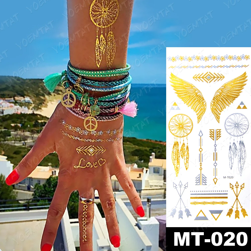 Водонепроницаемый Временные татуировки стикер Мандала хна Золото Серебро металлик флэш-тату Бохо вечерние блестящие украшения браслет боди-арт