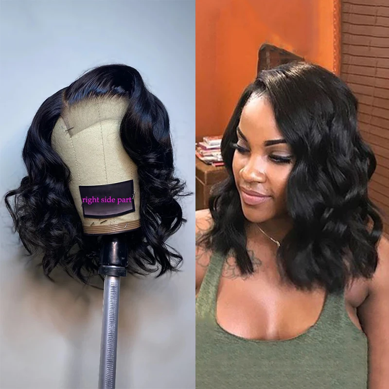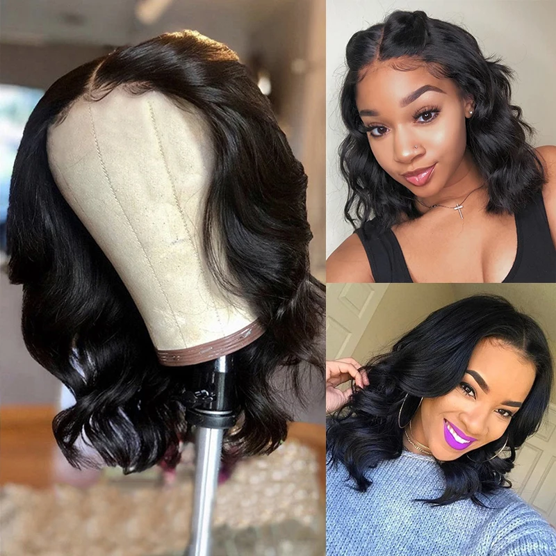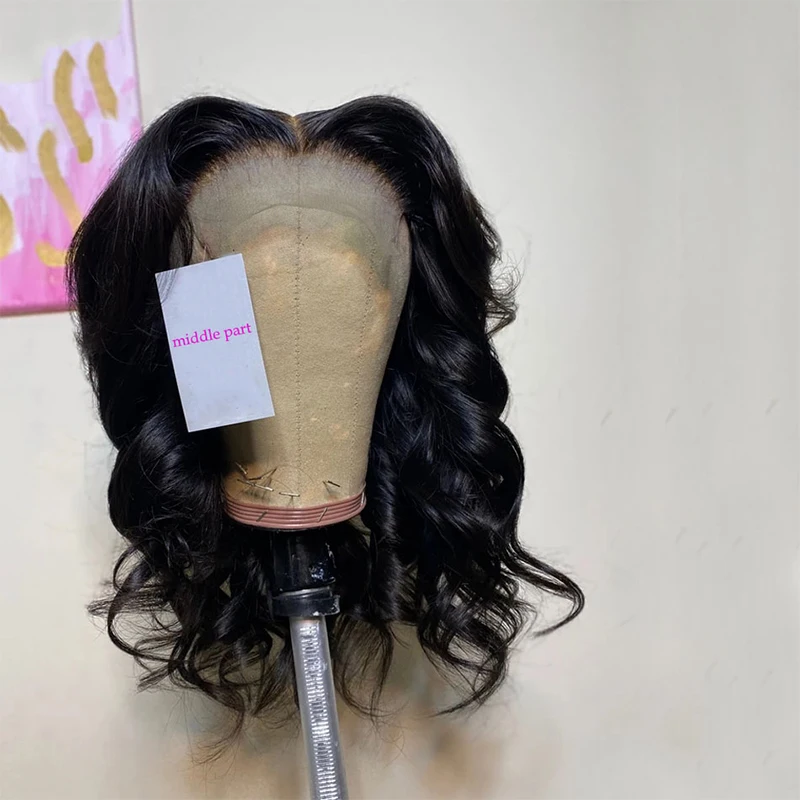 Предварительно выщипанные человеческие волосы парики Волнистые Короткие Боб 4*4 парик на сетке 180% бразильские человеческие волосы Remy парики на сетке средняя часть