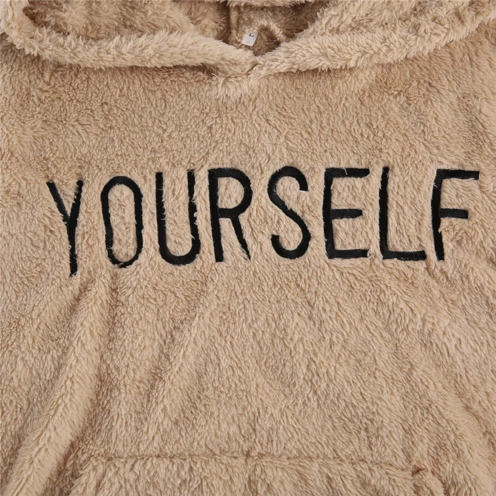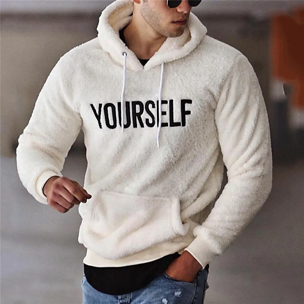 Осенне-зимняя мужская теплая флисовая толстовка с капюшоном и длинными рукавами, пуловер с надписью и карманом-кенгуру
