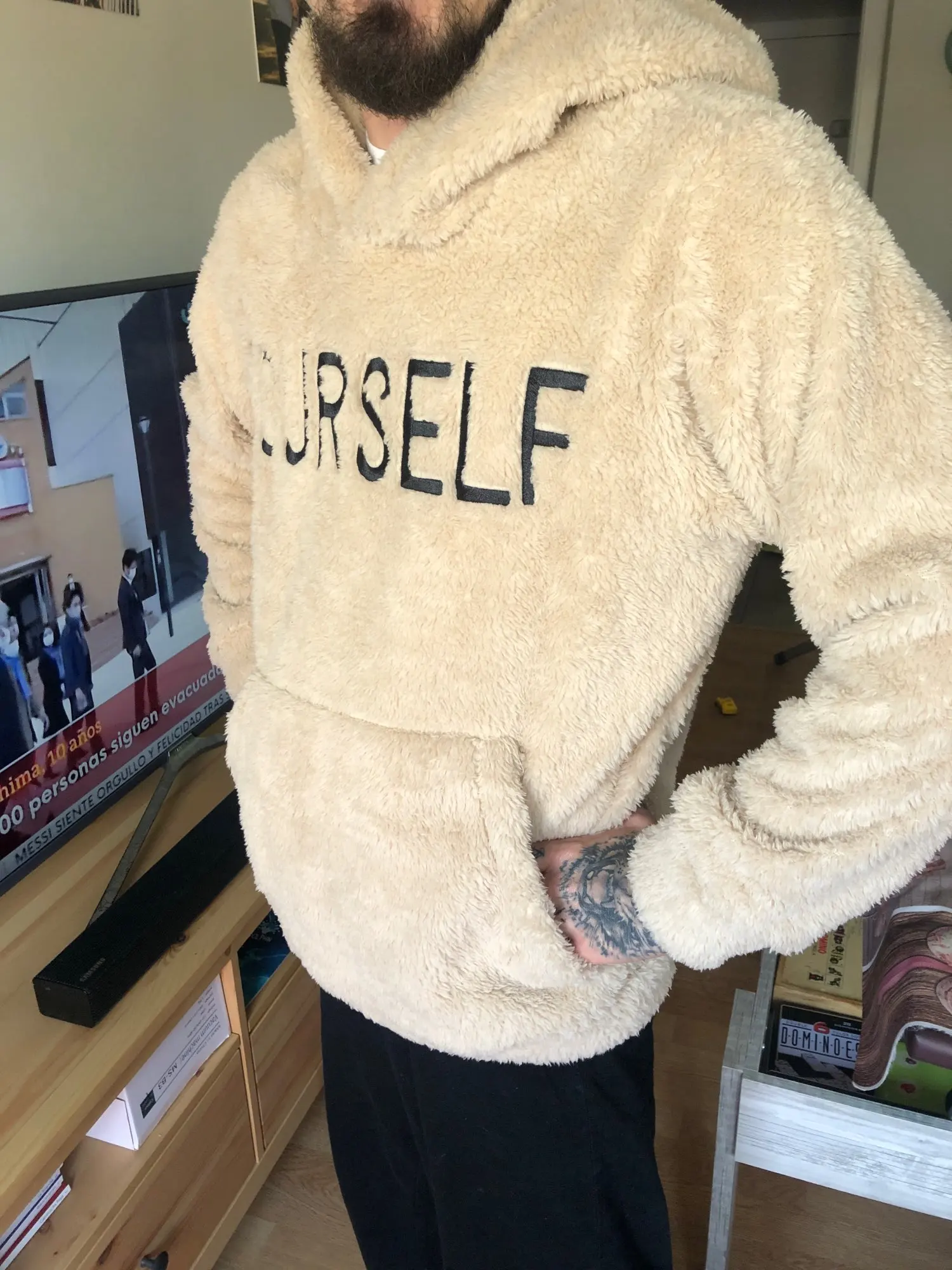Получено в Испании через 2 дня после заказа! Так же, как на фото или даже красивее по природе. Мой муж использует L, но я взял axl, потому что руки обычно короткие, и поэтому, хотя он немного широкий, руки идеально подходят. Толстовка бежевого цвета-красивый проход. Я собирался взять один для себя, но сначала я попробовал тот, что у моего мужа, и если мне нравится, как он выглядит, я беру белый, и он подходит, что ему больше нравится белый, хахаха.