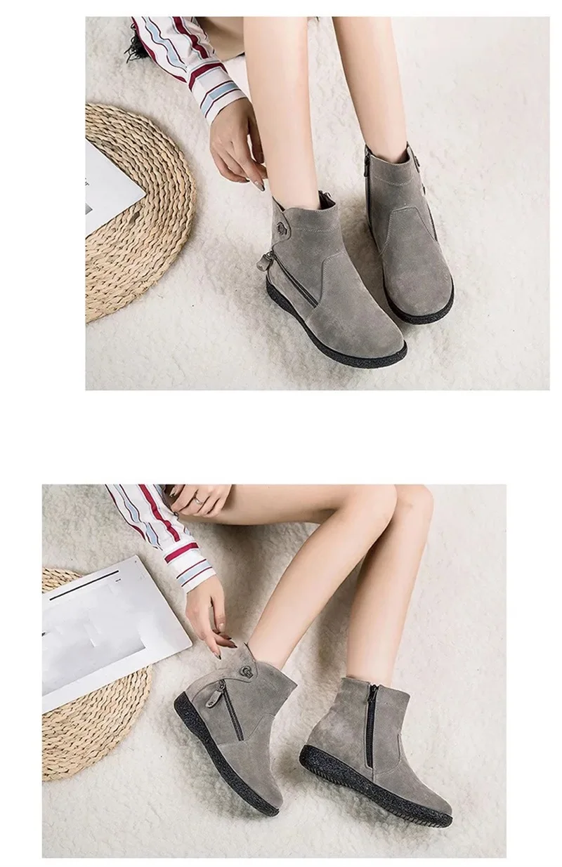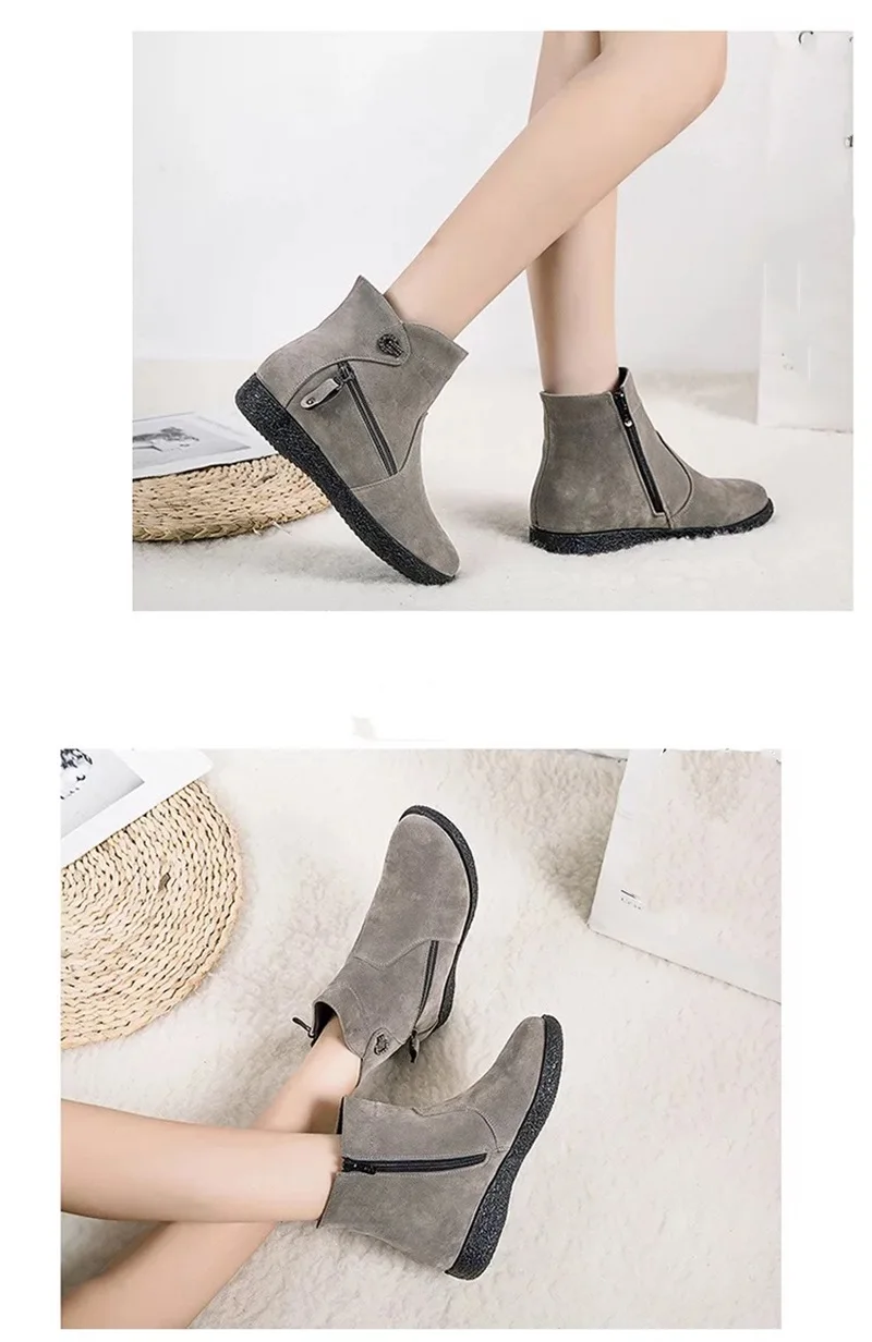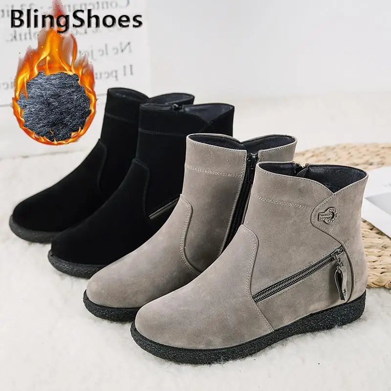 Новинка 2021, зимние женские ботинки для снежной погоды, женские плюшевые теплые меховые замшевые ботильоны на плоской подошве на молнии, модная женская повседневная обувь больших размеров