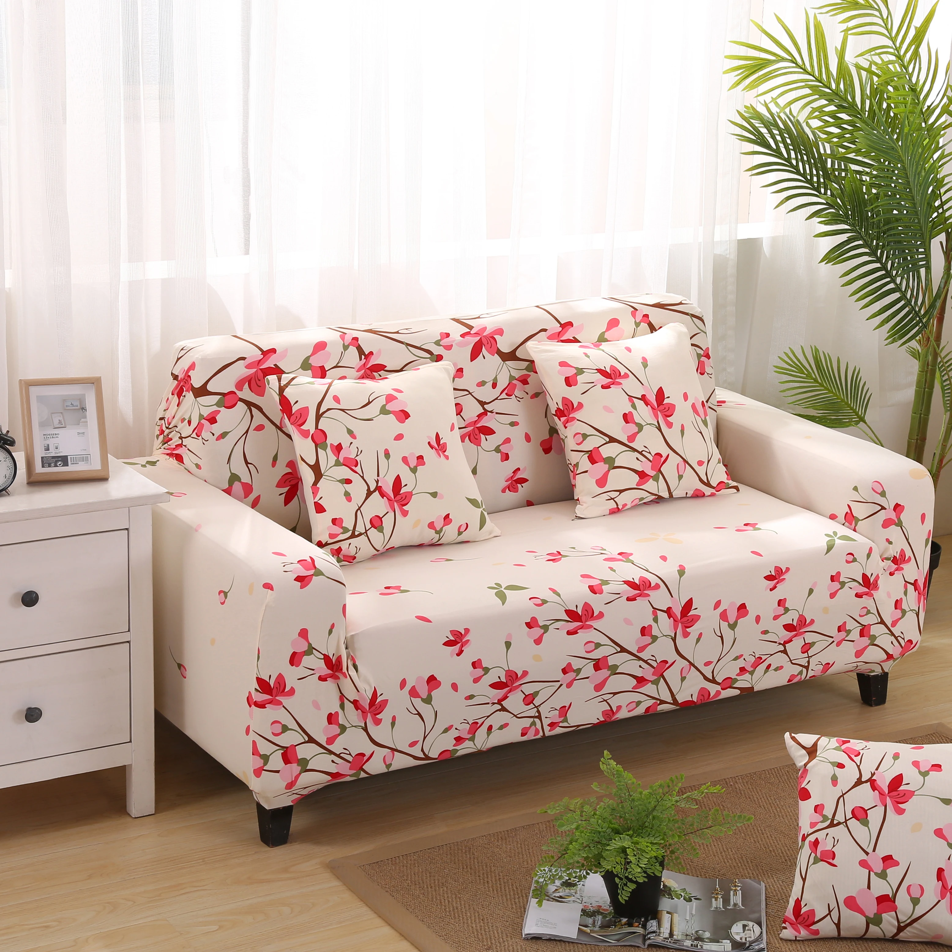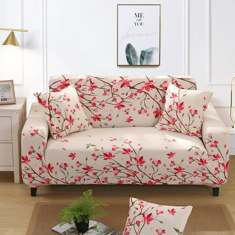 Чехол для дивана, эластичный, с рисунком персикового цвета, для гостиной