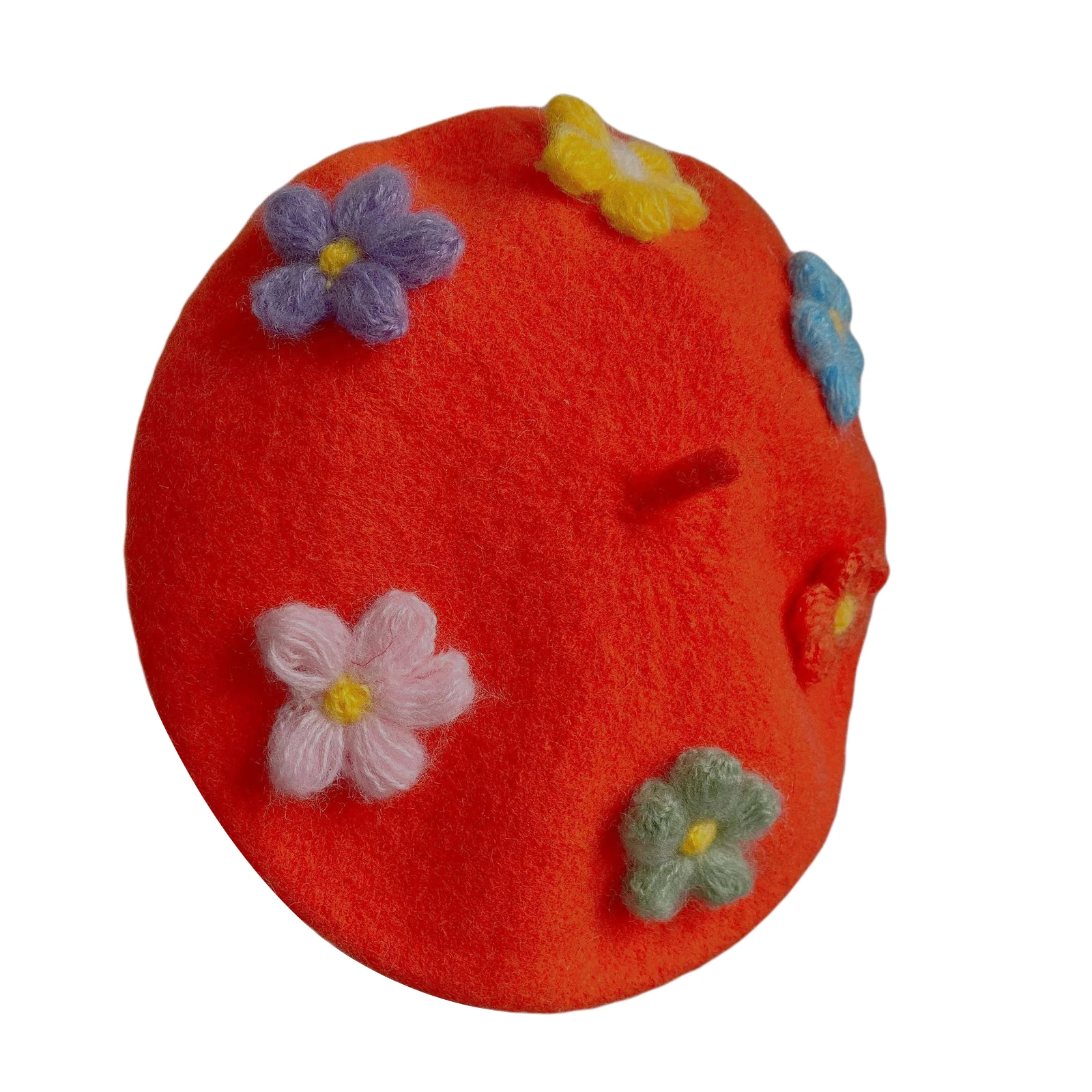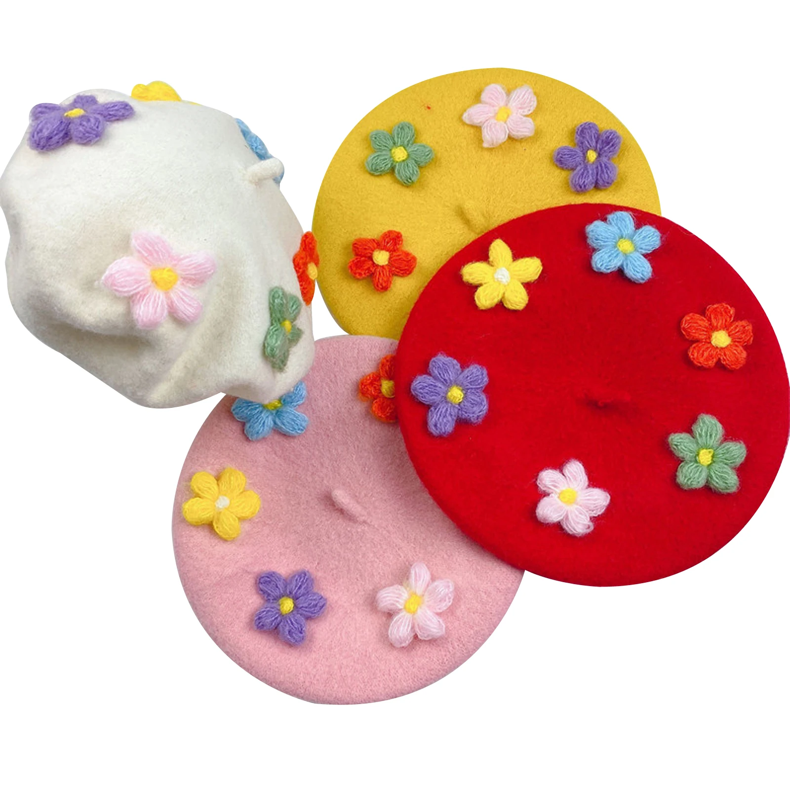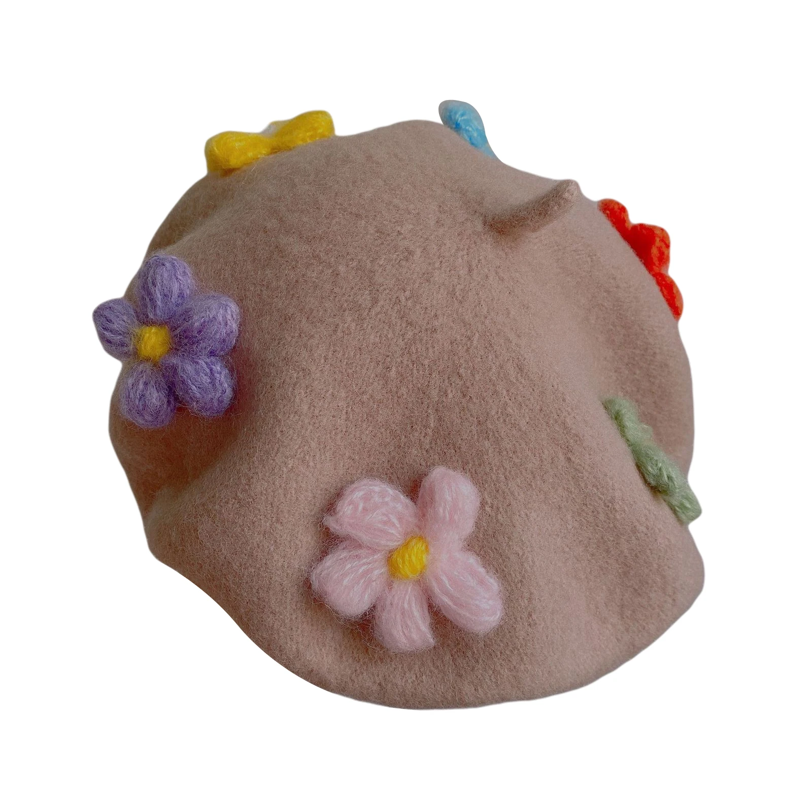Купольный берет для маленьких девочек, Шапка-бини в классическом французском стиле, Зимняя Шапка-бини с цветными цветами