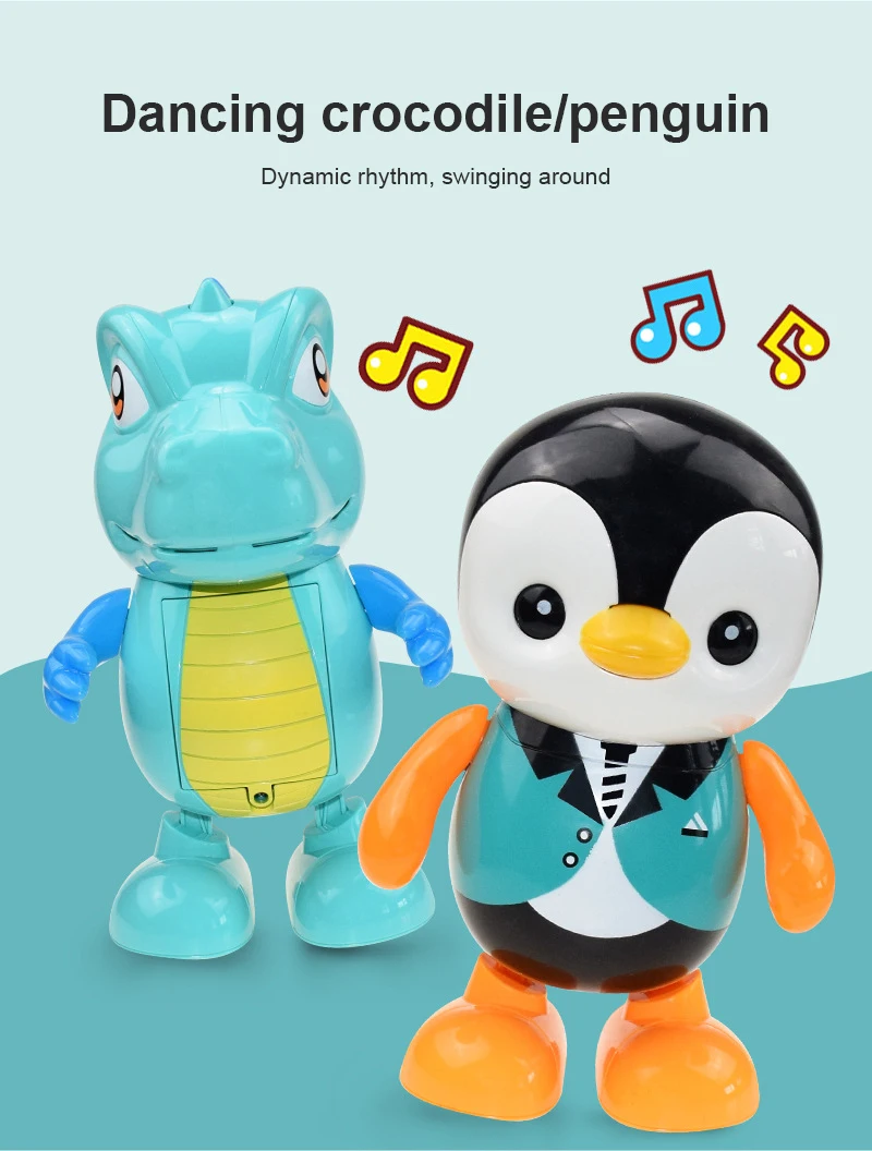 Электрический танцы маленькой желтой уткой робот Пингвин динозавр светильник музыкальный танцующий детская игрушка, пластиковая кукла подарок детям Кукольный дом