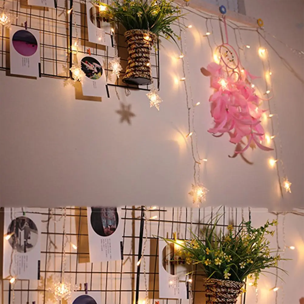 СВЕТОДИОДНАЯ Гирлянда-занавеска с дистанционным управлением, LED лента с питанием от USB-аккумулятора для украшения дома, свадьбы, вечеринки, Рождества