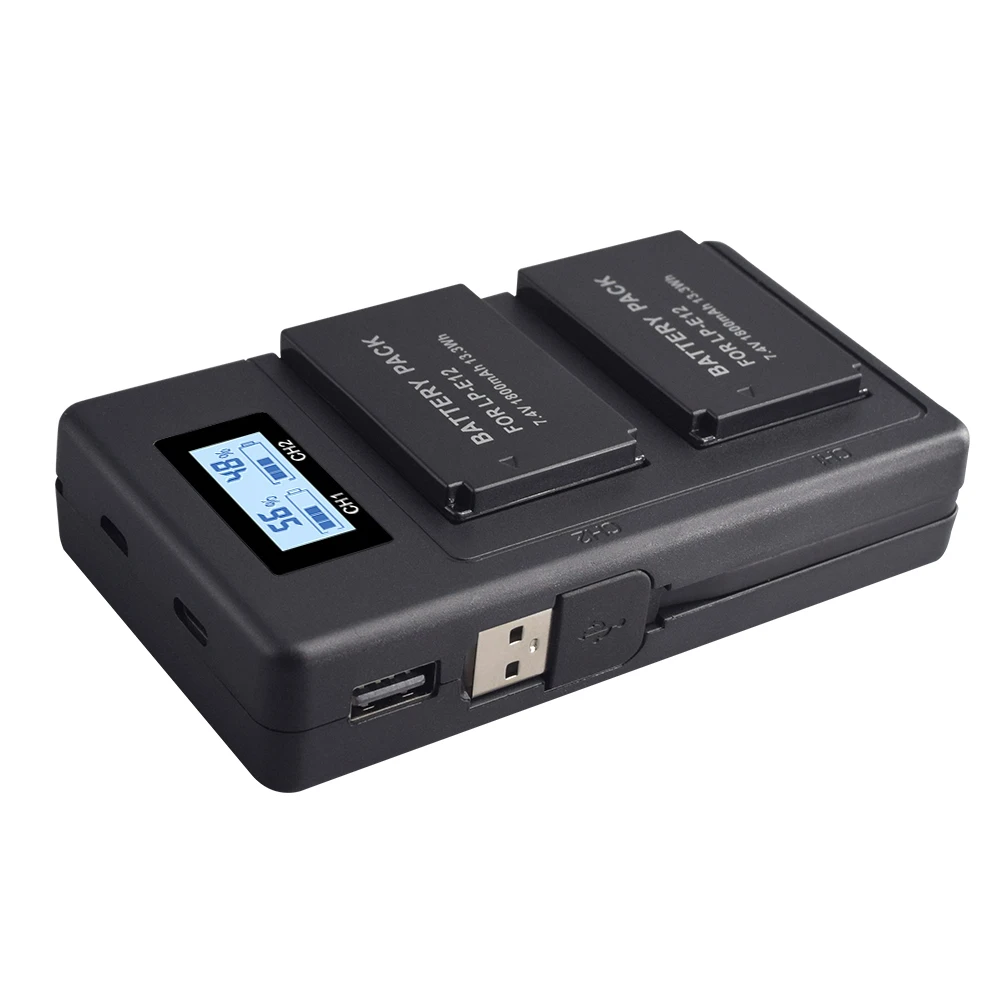 2 шт. 1800 мАч, LP-E12 LP E12 LPE12 Li-Ion Батарея + ЖК-дисплей USB Dual Зарядное устройство для цифровой однообъективной зеркальной камеры Canon EOS M50, EOS M100,100D поцелуй X7 Rebel SL1 Камера