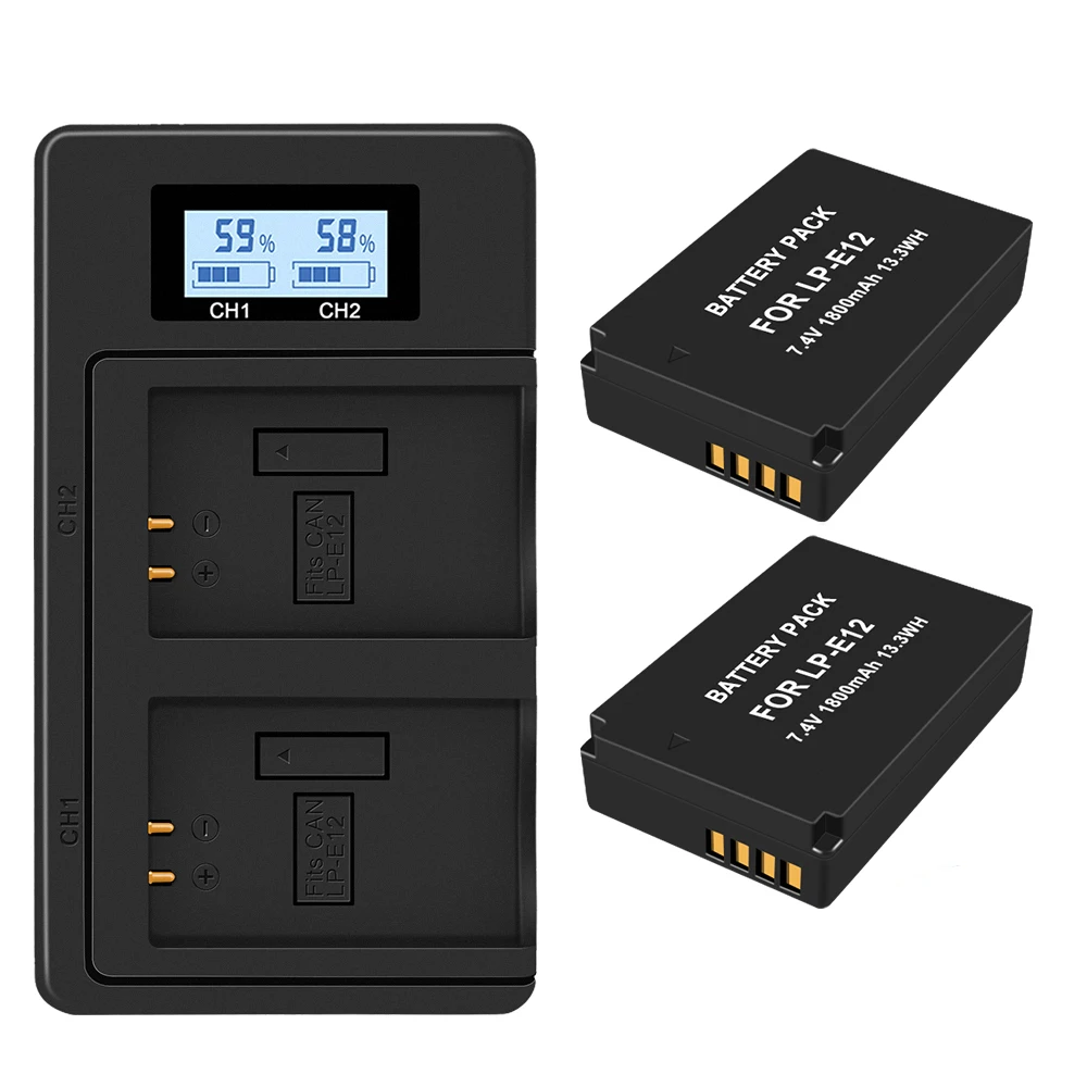 2 шт. 1800 мАч LP-E12 LP E12 LPE12 литий-ионная батарея + LCD USB двойное зарядное устройство для камеры Canon EOS M50, EOS M100,100D Kiss X7 Rebel SL1Прямая доставка