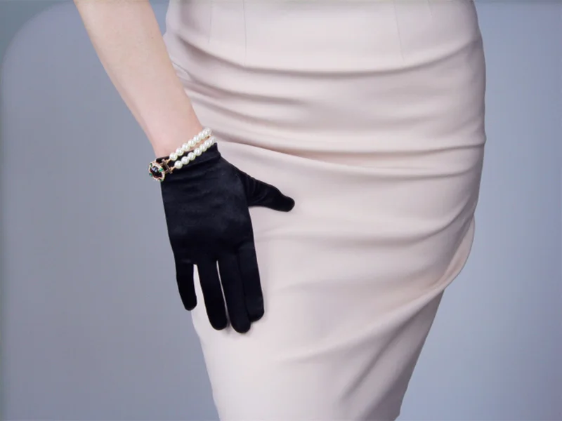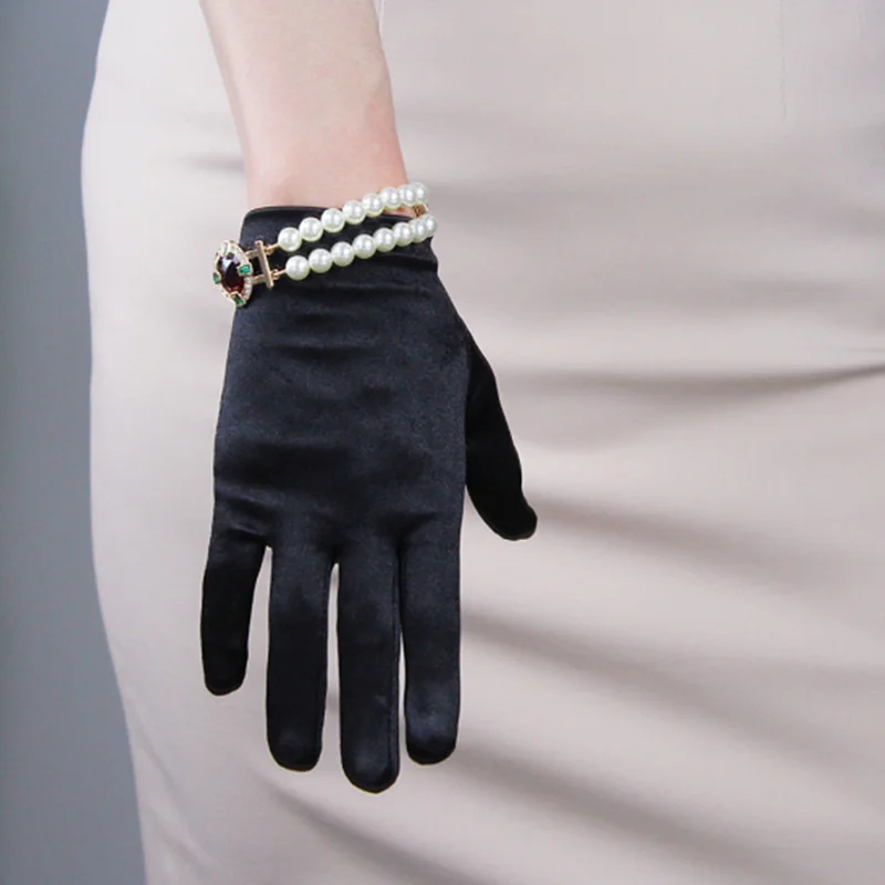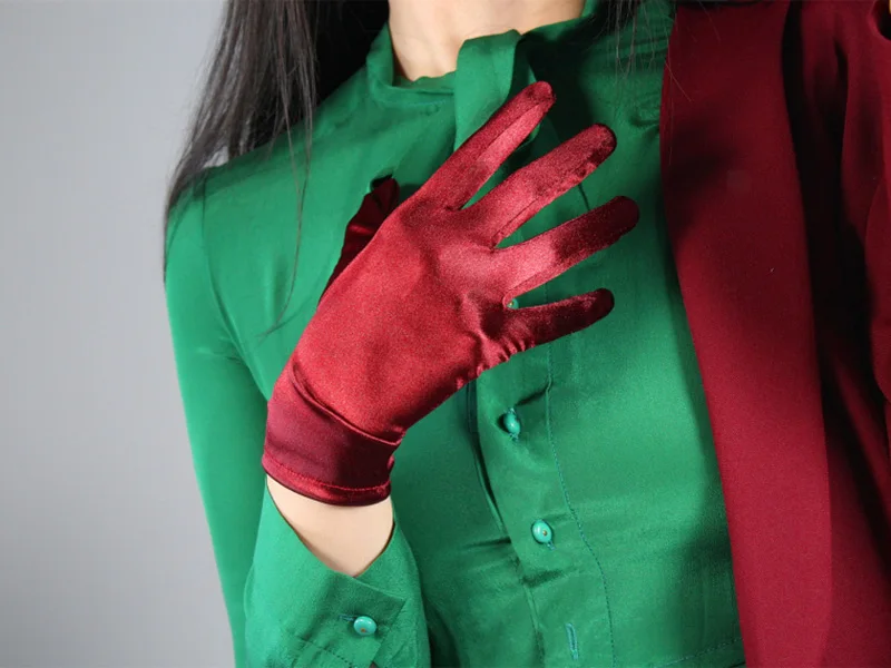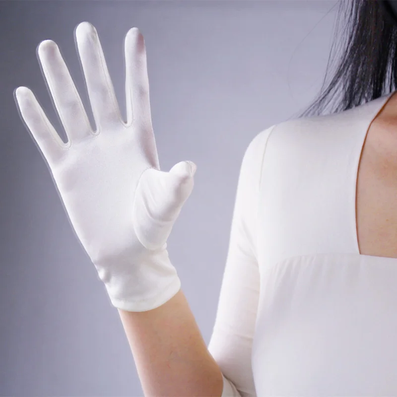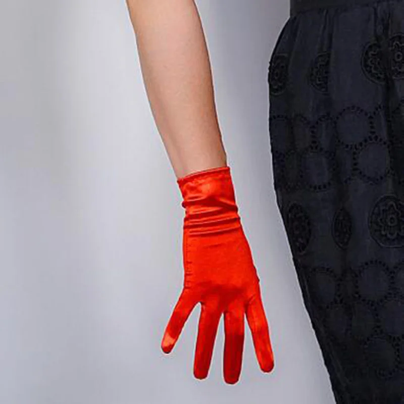 Женские Эластичные Короткие атласные перчатки 22 см из мерсеризованного шелка для танвечерние, этикета, тонкие однотонные теплые перчатки для вождения, L78