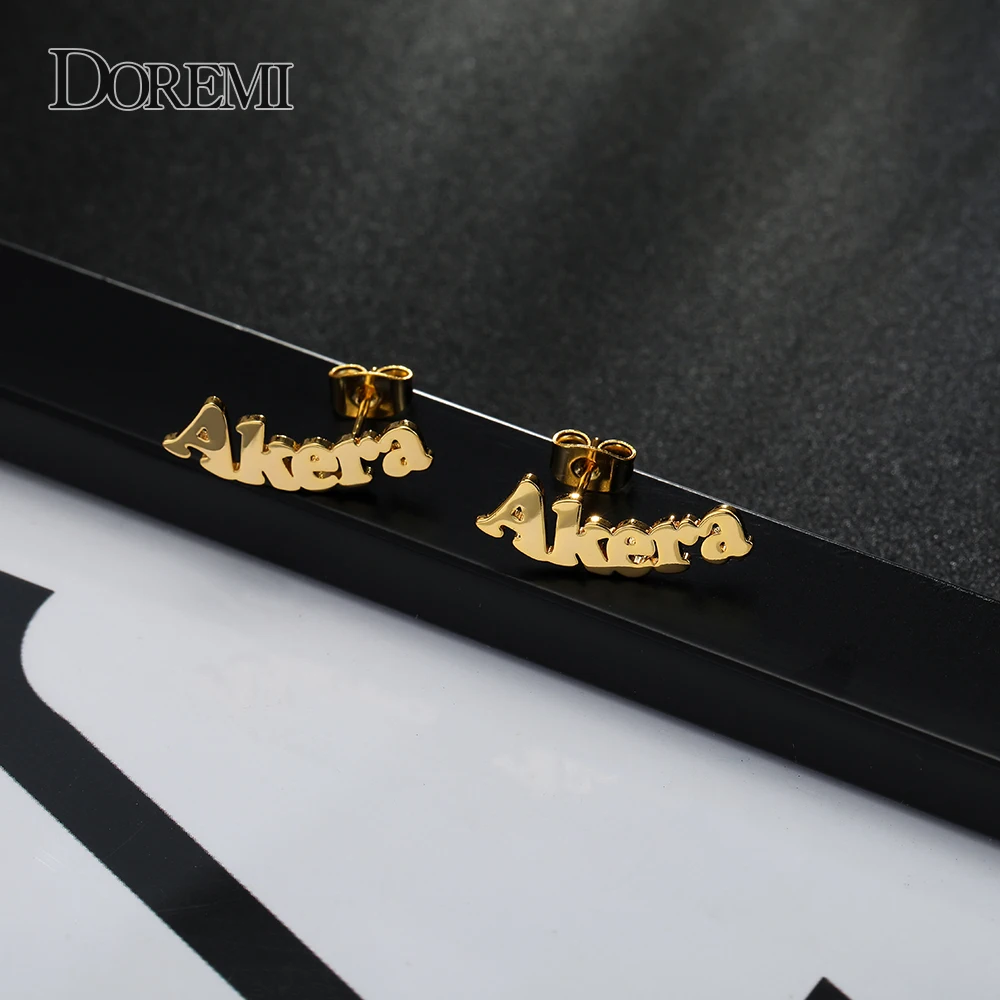 DOREMI персонализированные серьги с именем на заказ, золотые серьги-гвоздики с именной табличкой для женщин и девушек, инициализированные ювелирные изделия с именем на заказ
