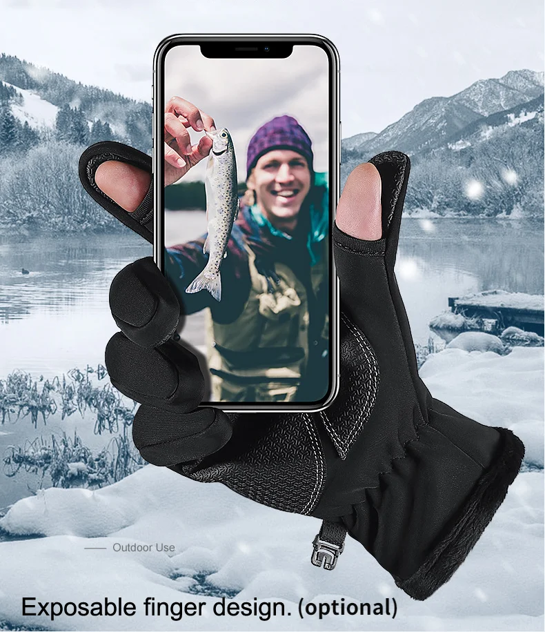 Мужские и женские уличные водонепроницаемые перчатки для сенсорного экрана с открытыми пальцами Зимние флисовые теплые мотоциклетные гоночные лыжные перчатки