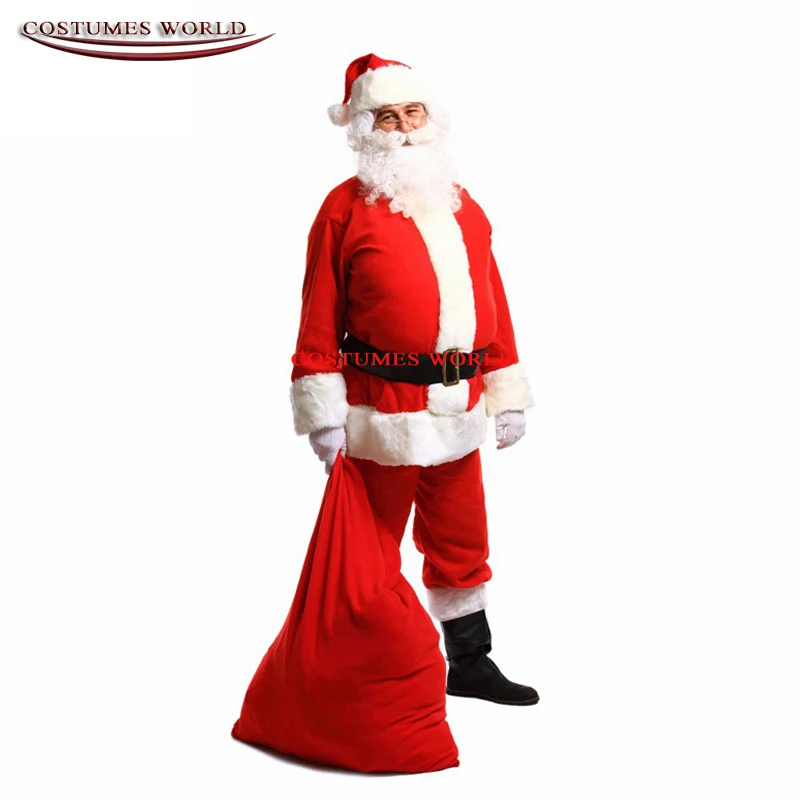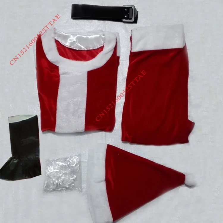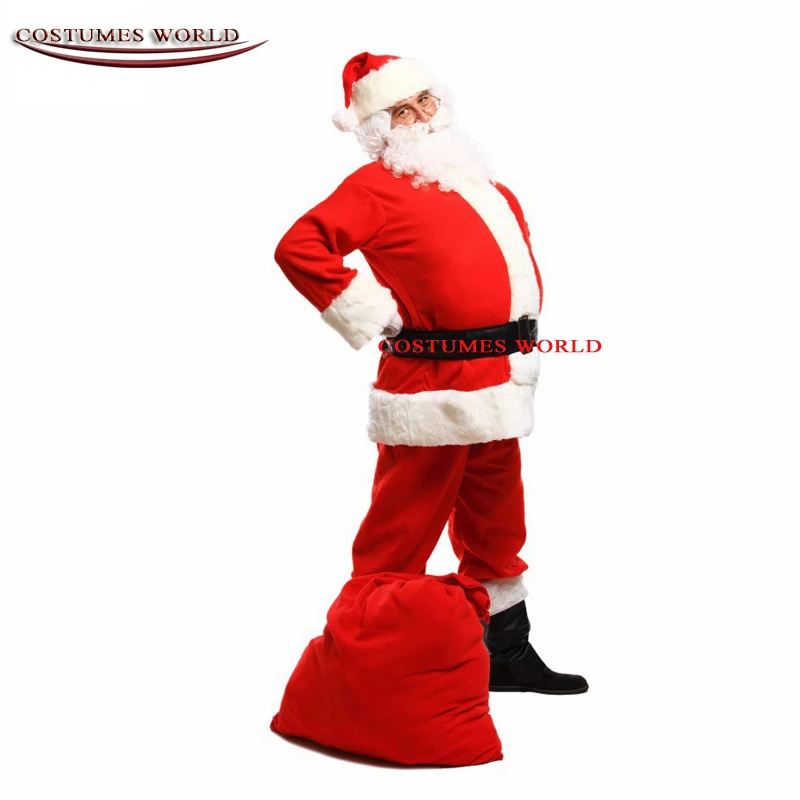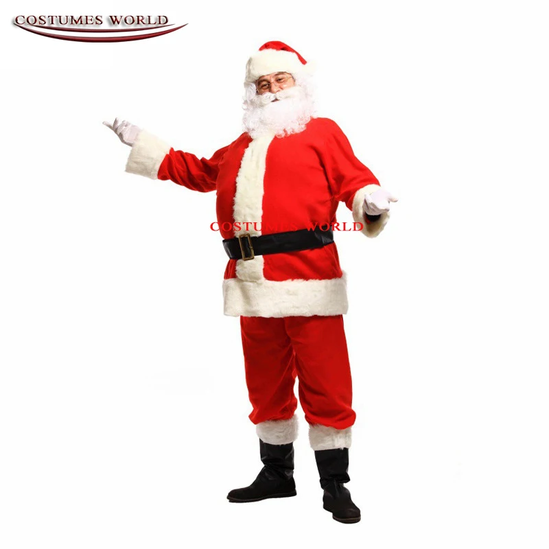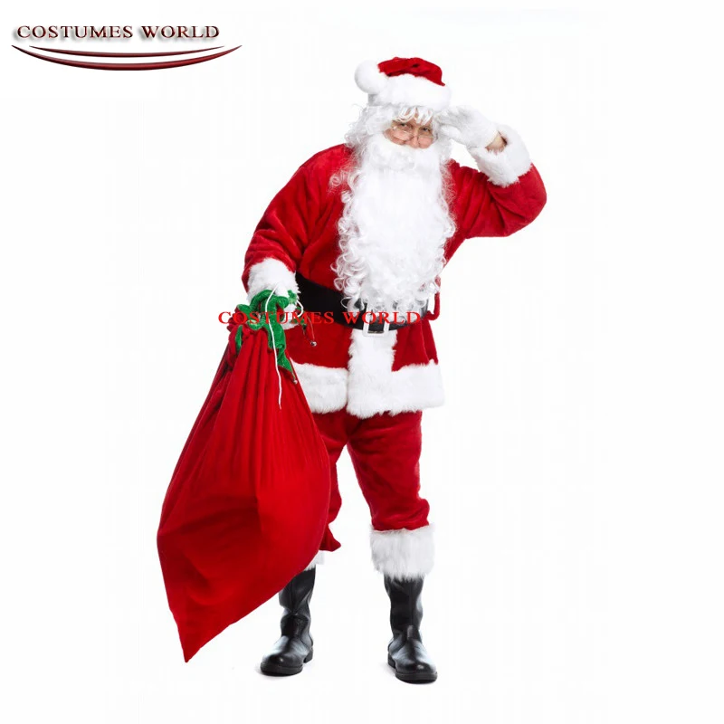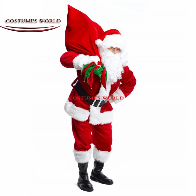Костюм Санта-Клауса для взрослых 2021, плюшевый костюм, одежда для отца, реквизит для рождества, пальто, брюки, пояс для бороды, шапка, Рождественский комплект
