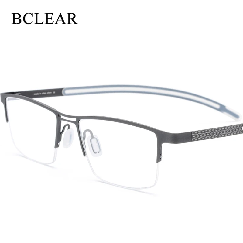 BCLEAR, оправа для очков из чистого титана, Мужские квадратные очки, мужские классические полуоптические оправы для очков по рецепту, Противоскользящие силиконовые оправы